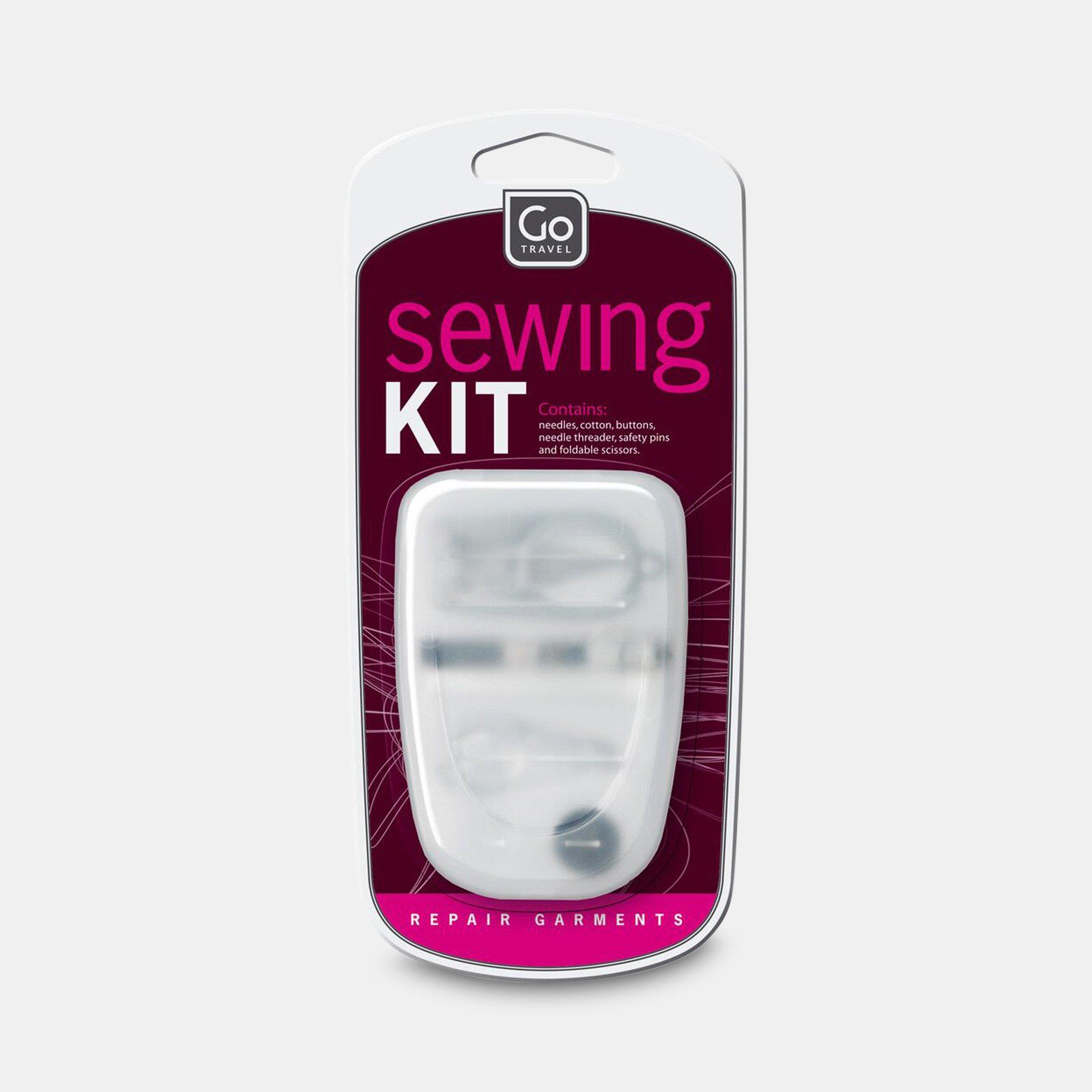 Ein praktisches Nähkit für die Tasche von der Marke GO für Notfallreparaturen von Kleidung auf Reisen. Das Set beinhaltet Nadeln, Watte, Knöpfe und vieles mehr und gehört somit in jedes Reisegepäck!