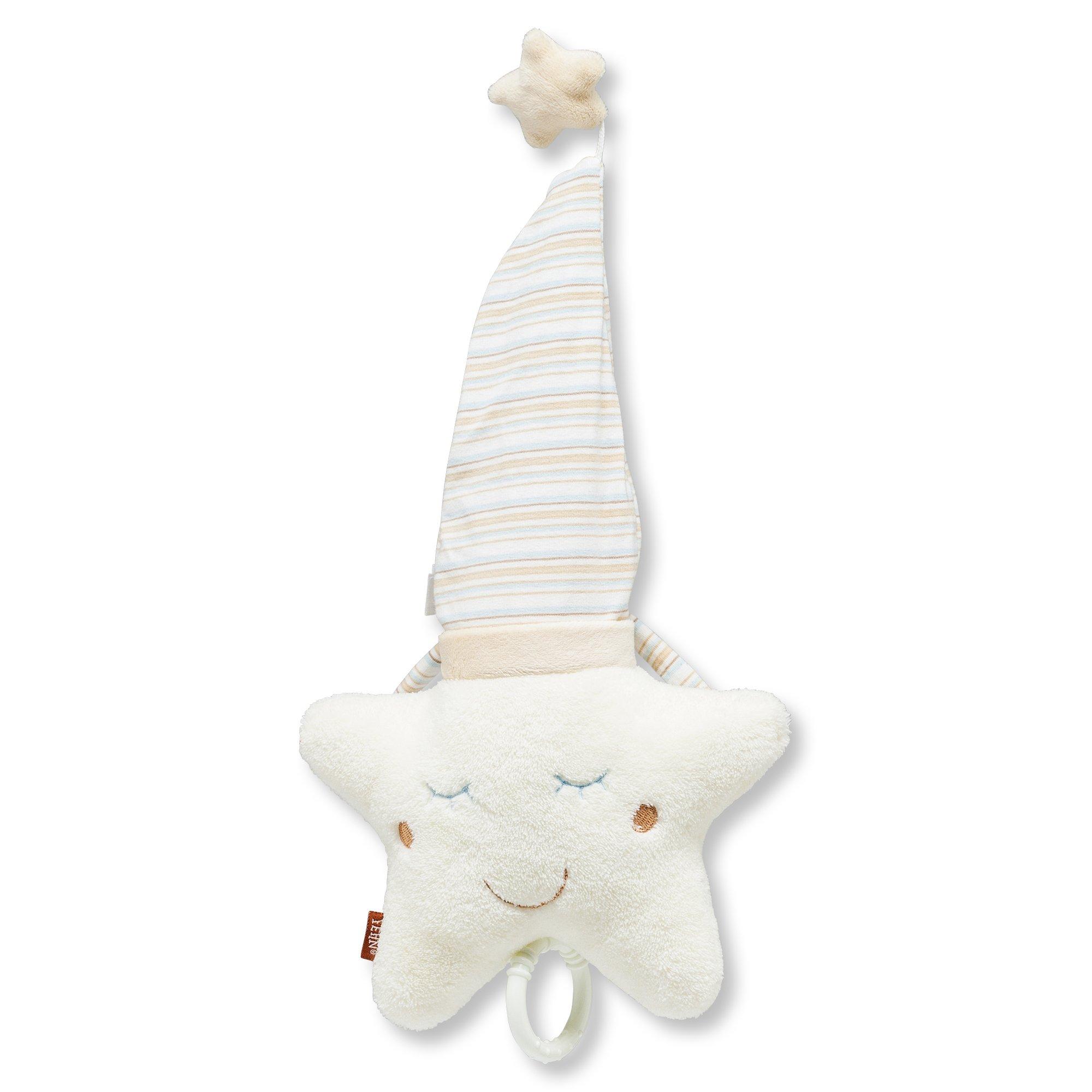 So schläft jedes Baby ein: Die süsse Spieluhr in pfiffiger Stern-Form von Fehn betört mit flauschig weichem Griff und einer hübschen Gutnacht-Melodie.