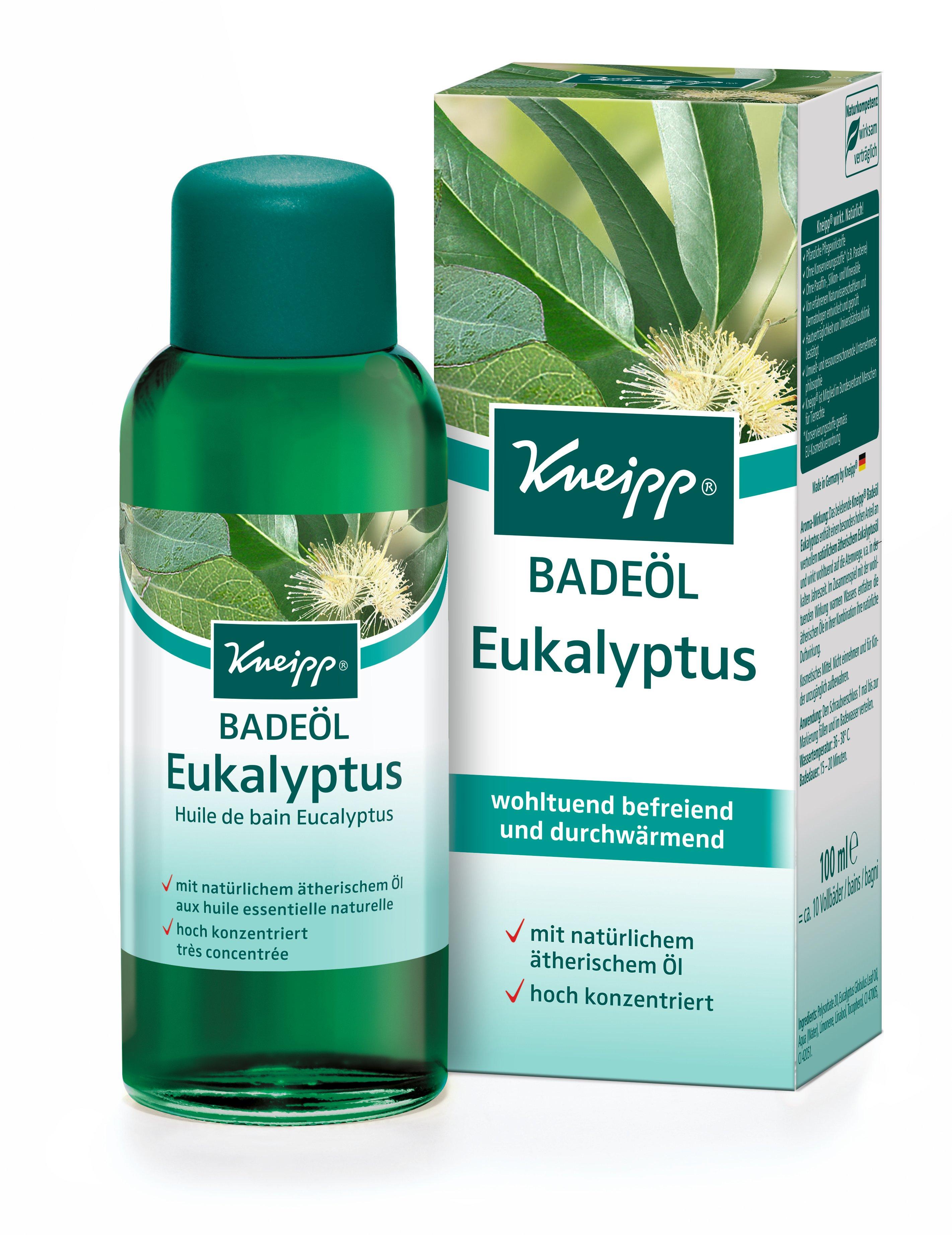 Aroma-Wirkung: Das belebende Kneipp® Badeöl Eukalyptus enthält einen besonders hohen Anteil an wertvollem natürlichem ätherischem Eukalyptusöl und wirkt wohltuend auf die Atemwege, v.a. in der kalten Jahreszeit. Im Zusammenspiel mit der wohltuenden Wirkung warmen Wassers entfalten die ätherischen Öle in ihrer Kombination ihre natürliche Duftwirkung.