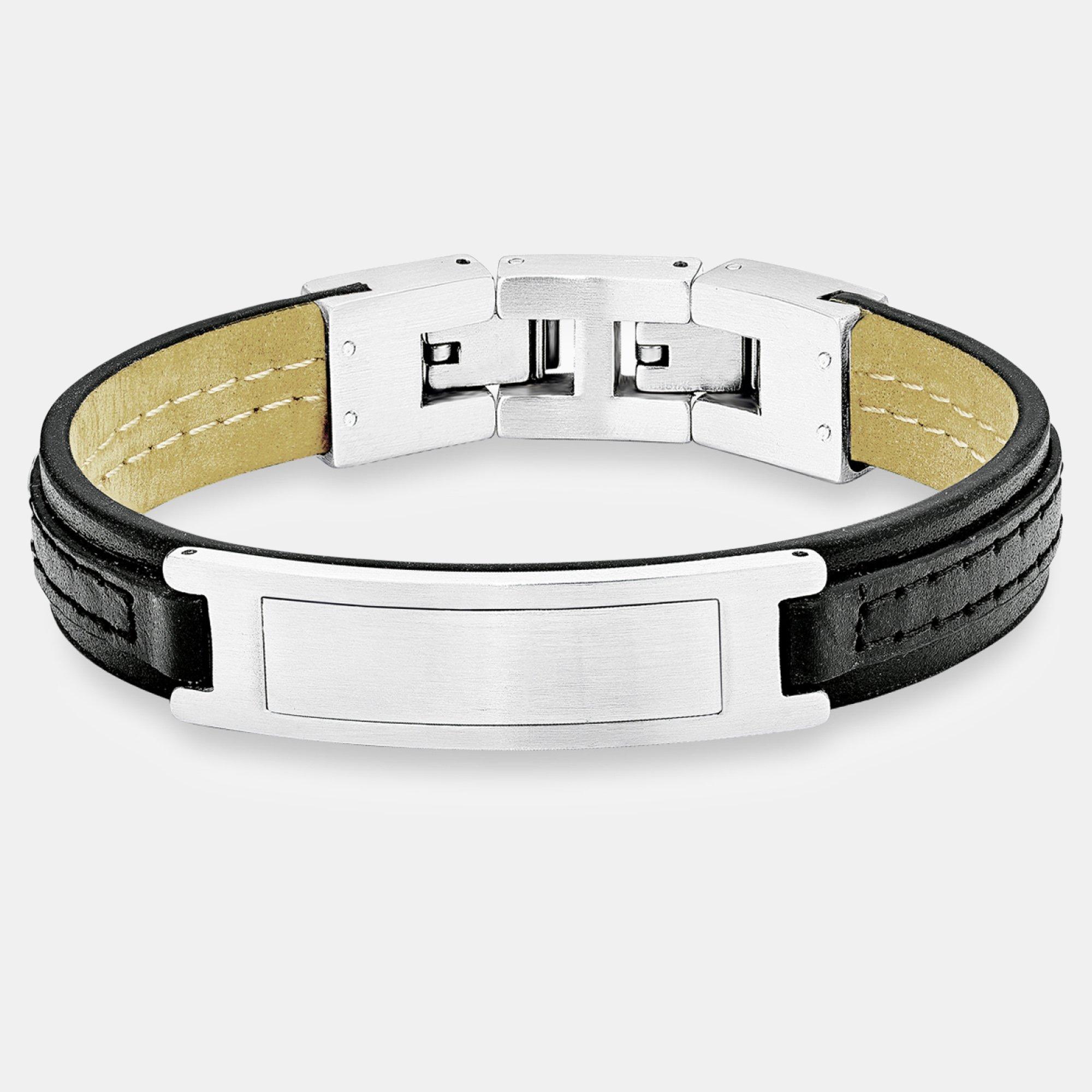 Armbänder sind längst tägliche Begleiter für modische Männer. Besonders lässig sind Lederarmbänder mit coolen Details wie Edelstahlelementen. Die Plakette aus Edelstahl harmoniert perfekt mit dem breiten Lederarmband aus schwarzem Rindsleder. Das Männerarmband ist in der Länge verstellbar (20+2 cm).