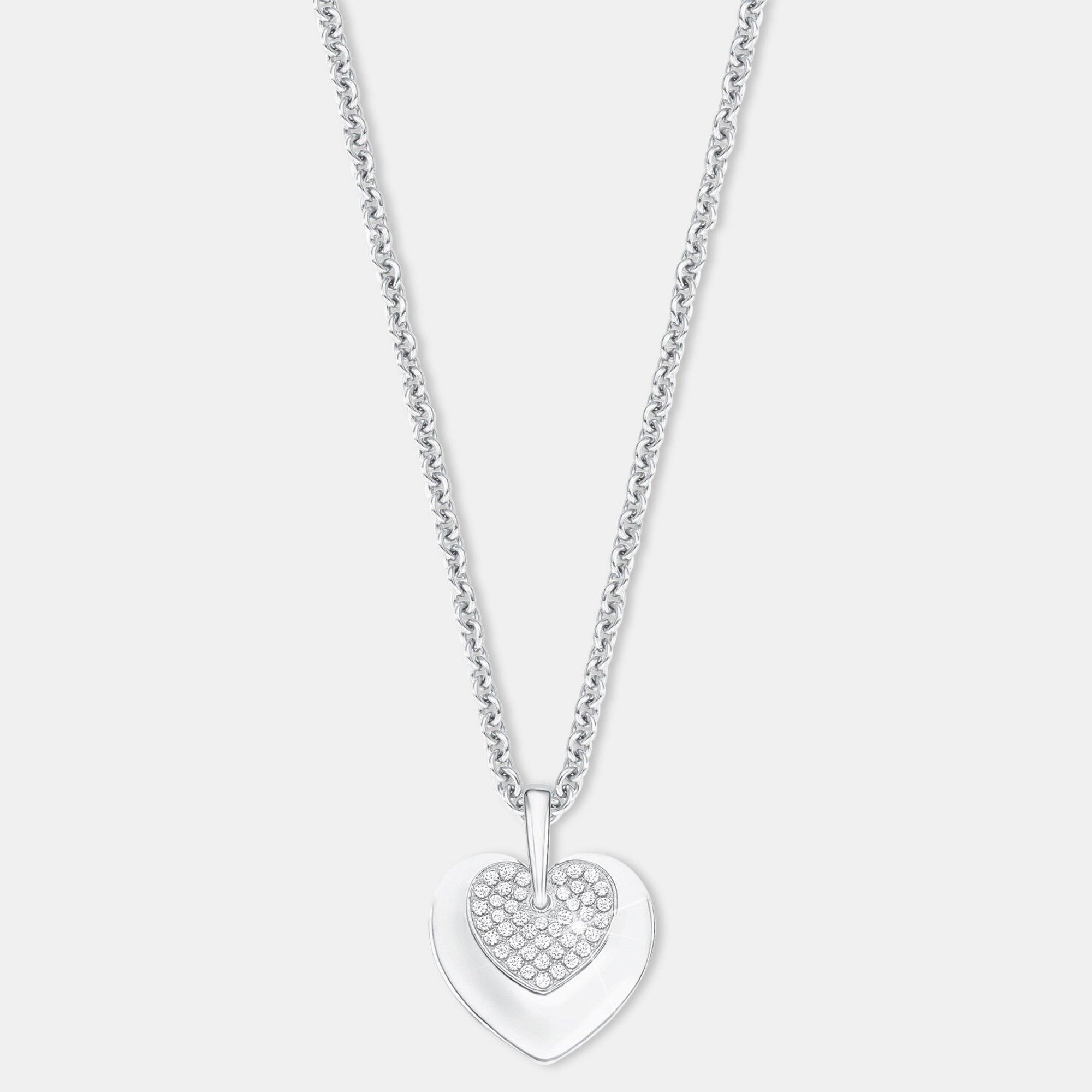 Herzhafte Botschaften übermittelt diese 45 cm lange Erbskette mit zwei wunderschön designten Herzen als Anhänger. Das kleine Herz ist mit fein geschliffenen Zirkonia (synth.) in reinem Weiß besetzt, das große Herz eignet sich durch seine glatte Oberfläche ideal für eine persönliche Gravur. Eine Schutzschicht aus Rhodium schützt das Schmuckstück vor dem Anlaufen und ist besonders hautverträglich.