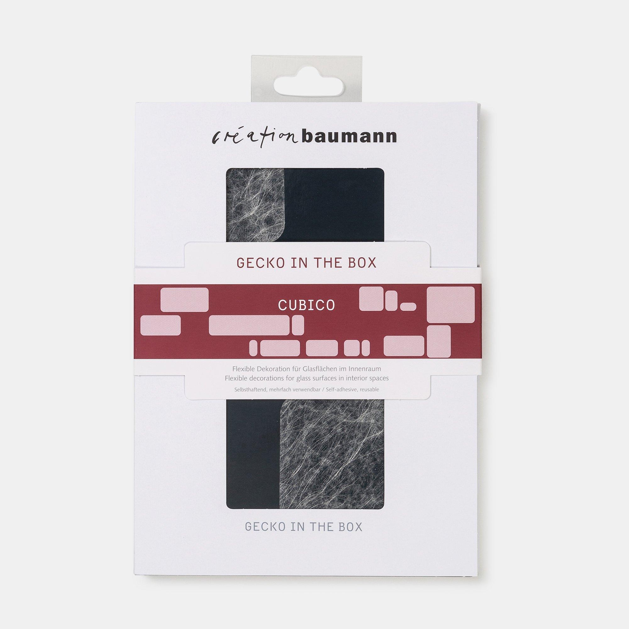 GECKO IN THE BOX- Flexible Dekoration für Glasflächen im Innenraum. Das hochwertige Hafttextil von Création Baumann kommt in einem modernen Blockdesign. Die Hafttextile sind selbsthaftend und mehrfach verwendbar. Dekorieren Sie kreativ Ihr Zuhause.