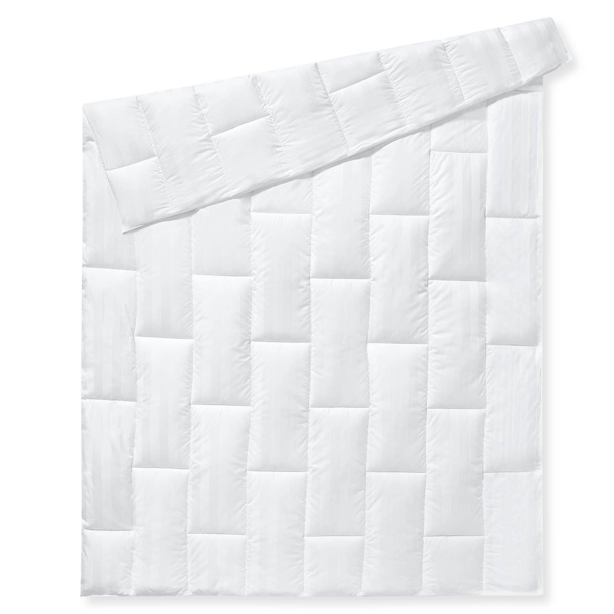 Das Premium Ganzjahres-Synthetikduvet ist ideal geeignet für Schläfer mit einem durchschnittlichen Wärmebedarf. Es gewährleistet besonders hochwertige Qualität, ist sehr weich, pflegeleicht und antistatisch. Die Füllung aus Microgel-Fasern wird durch edles Jacquard-Streifensatin mit anschmiegsamer Bahnensteppung gefasst.