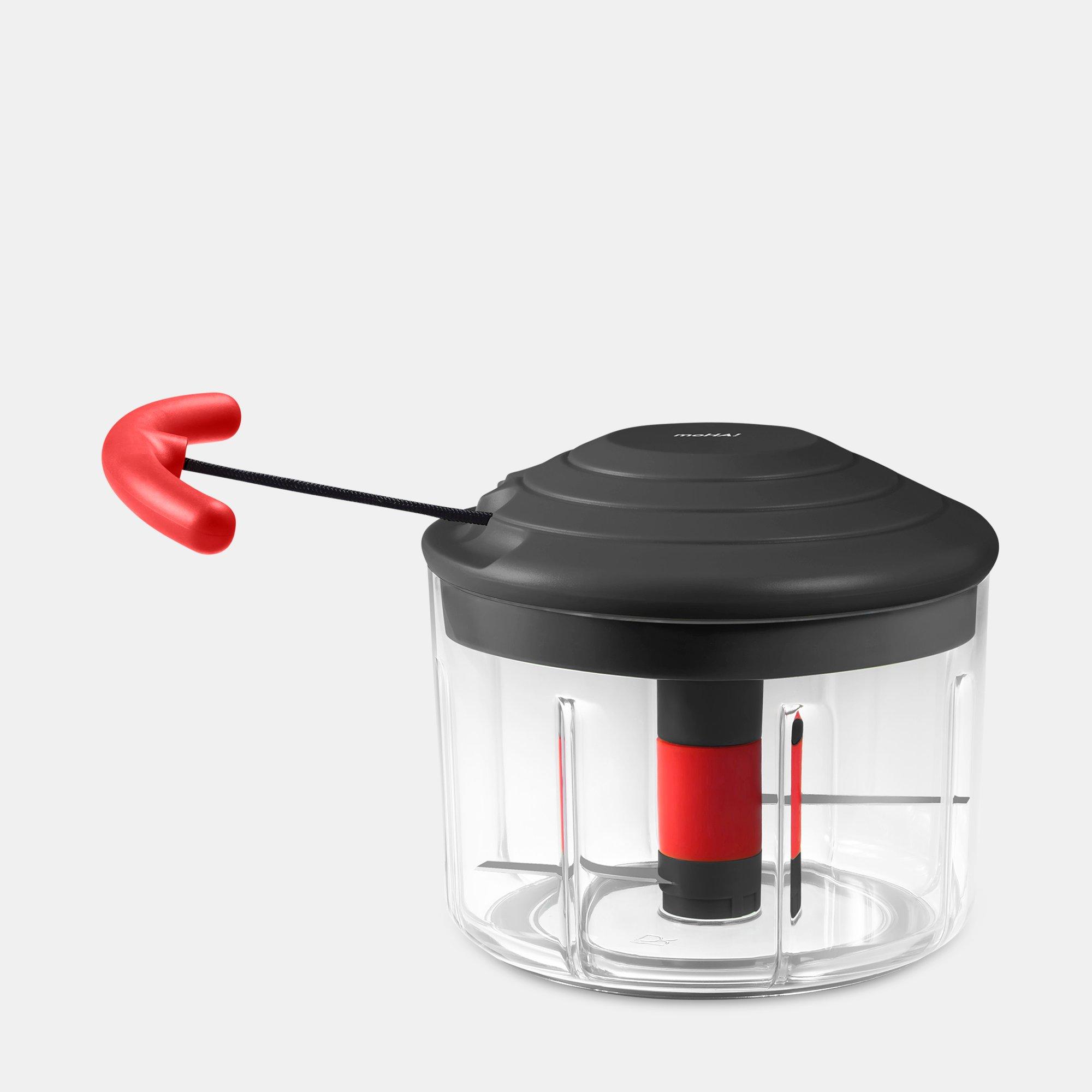 Der ultra-schnelle Hacker von Moha ist das ideale Helferlein in der Küche. Nur fünf bis zwanzig Mal ziehen für das gewünschte Ergebnis.