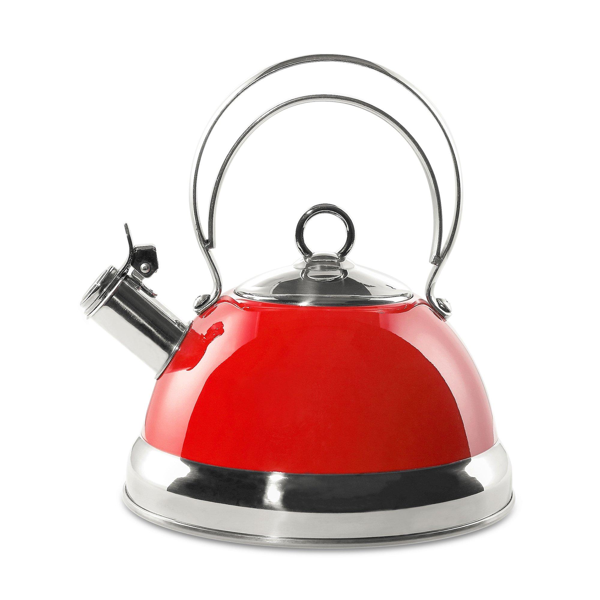 Klassischer Flötenkessel im Retro Stil von Wesco. Dieser aussergewöhnliche Wasserkessel besteht aus 18/10 Edelstahl und ist aussen hochwertig beschichtet. Der Flötenaufsatz wird zum Ausgiessen des Wassers durch einen einfachen Öffnungsmechanismus bedient. Der Edelstahl-Kapselboden mit Aluminiumkern sorgt für eine gute Wärmeleitung- und speicherung.