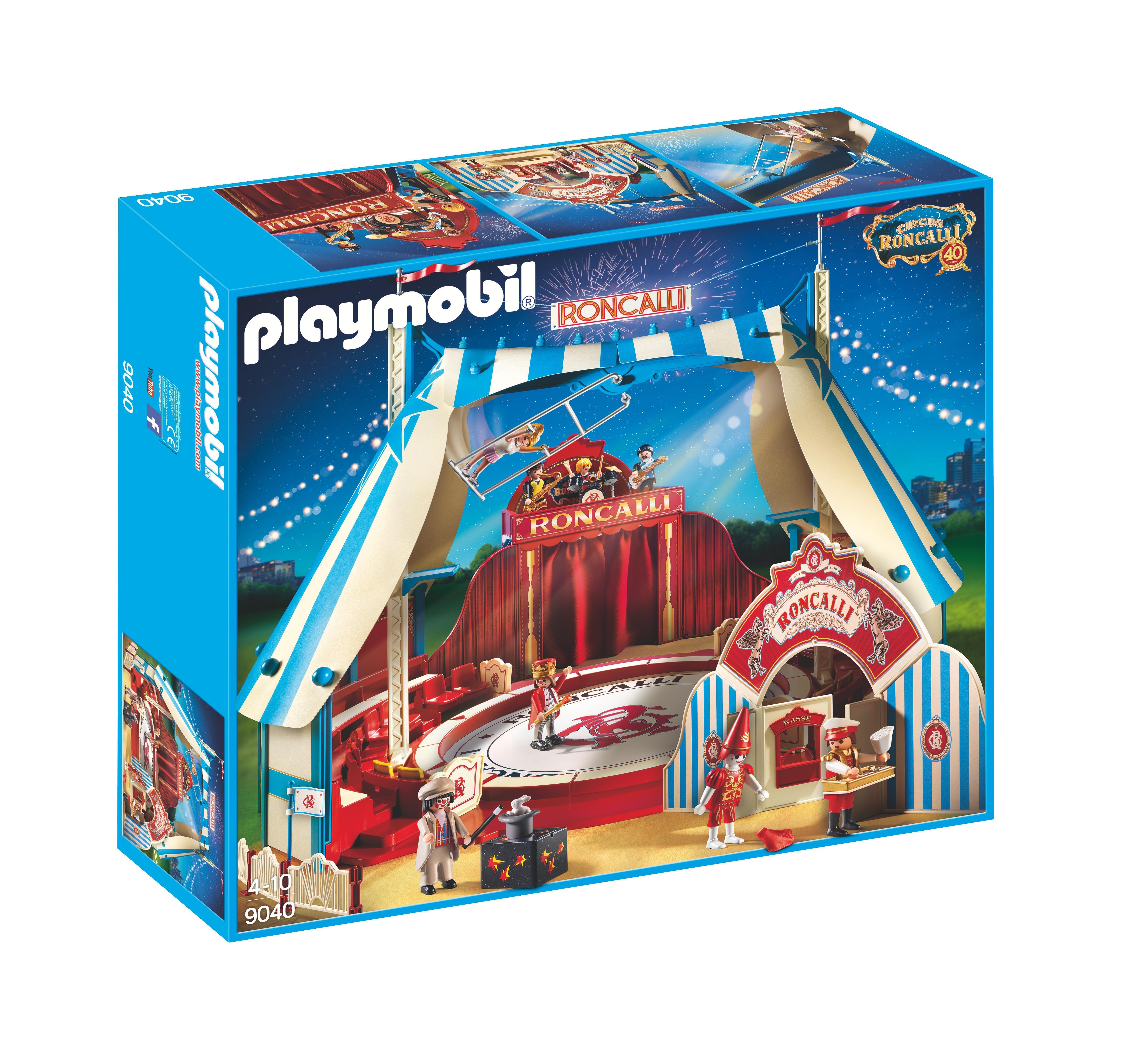 Mit zwei Ticketschaltern. Das große Circus-Zelt bietet Platz für mindestens 36 Zuschauer. Über dem mit Stoffvorhängen verschlossenen Artisteneingang nimmt die Kapelle Platz. Manege mit Trapez und Zauberkiste für den Häschen-Trick. Mit vielen Figuren. Maße Circuszelt: 45 x 60 x 48 cm (LxTxH). Art.Nr. 9044 Roncalli-Pferdedressur kann in der Manege Platziert werden.