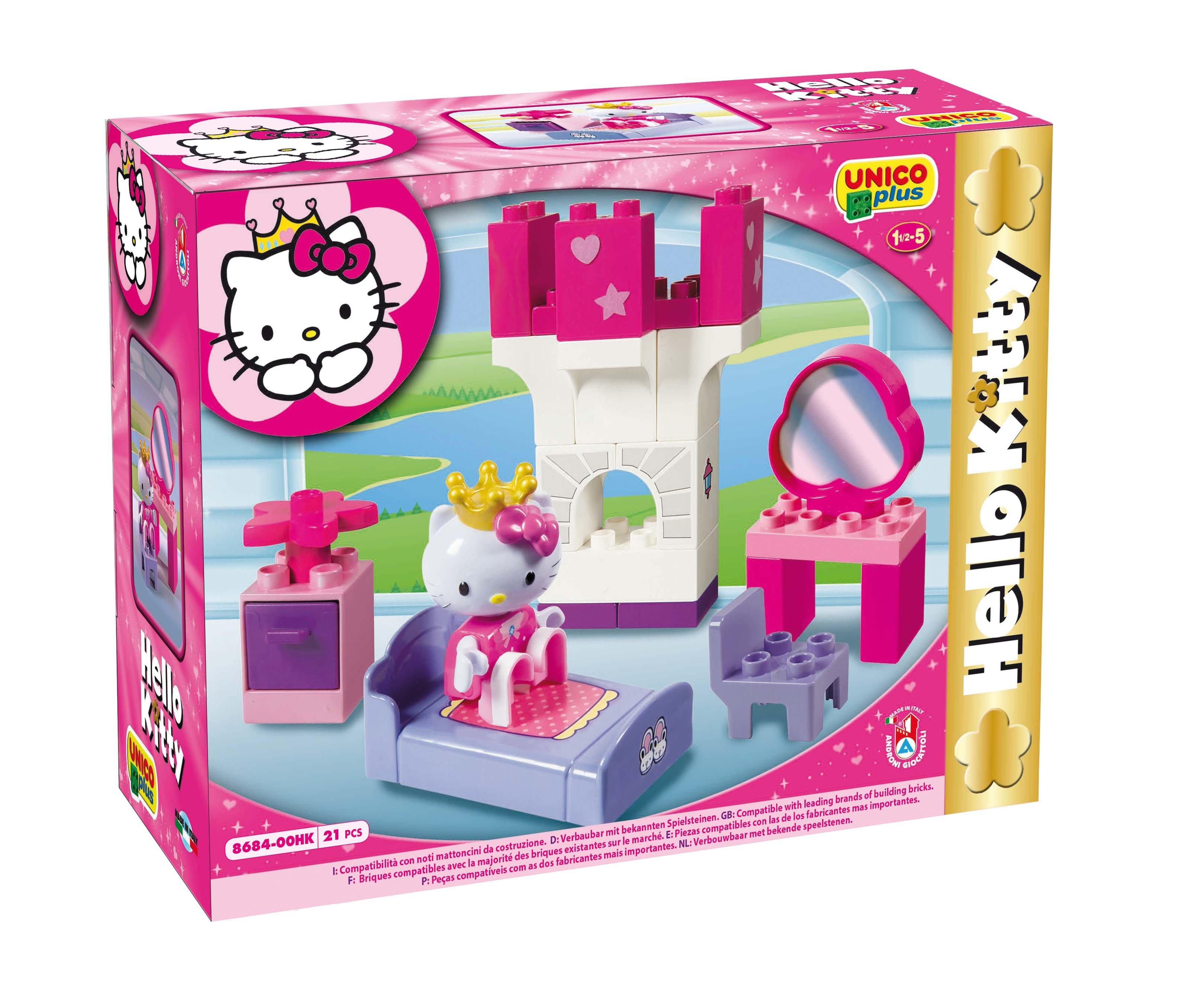Hello Kitty Schlafzimmer, Prinzessin, 21-teilig, Bausteine in ABS, 100 % verbaubar mit den bekannten Steinen, ab 1,5 bis 6 Jahren.