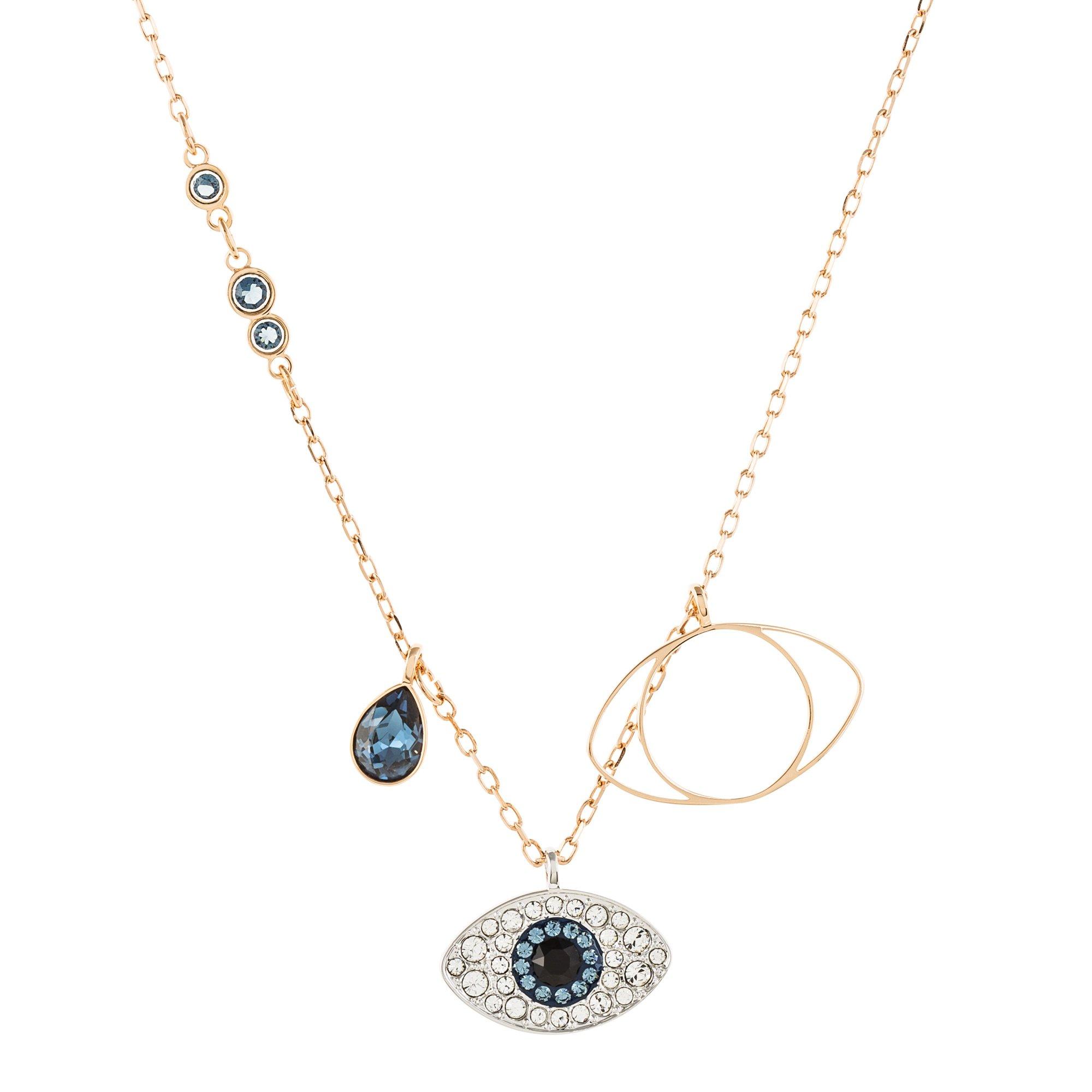 Diese moderne Variante zur Abwehr des bösen Blickes zeigt sich mit kunstvollen Details wie Schmucksteinen, die in die filigrane Halskette eingearbeitet sind und einem mit Glitzersteinen verzierten blauen Auge. Ein faszinierendes Schmuckstück von Swarovski, mit dem Sie gegen allerlei böse Kräfte gewappnet sind und mit neuer Energie durch den Alltag gehen.