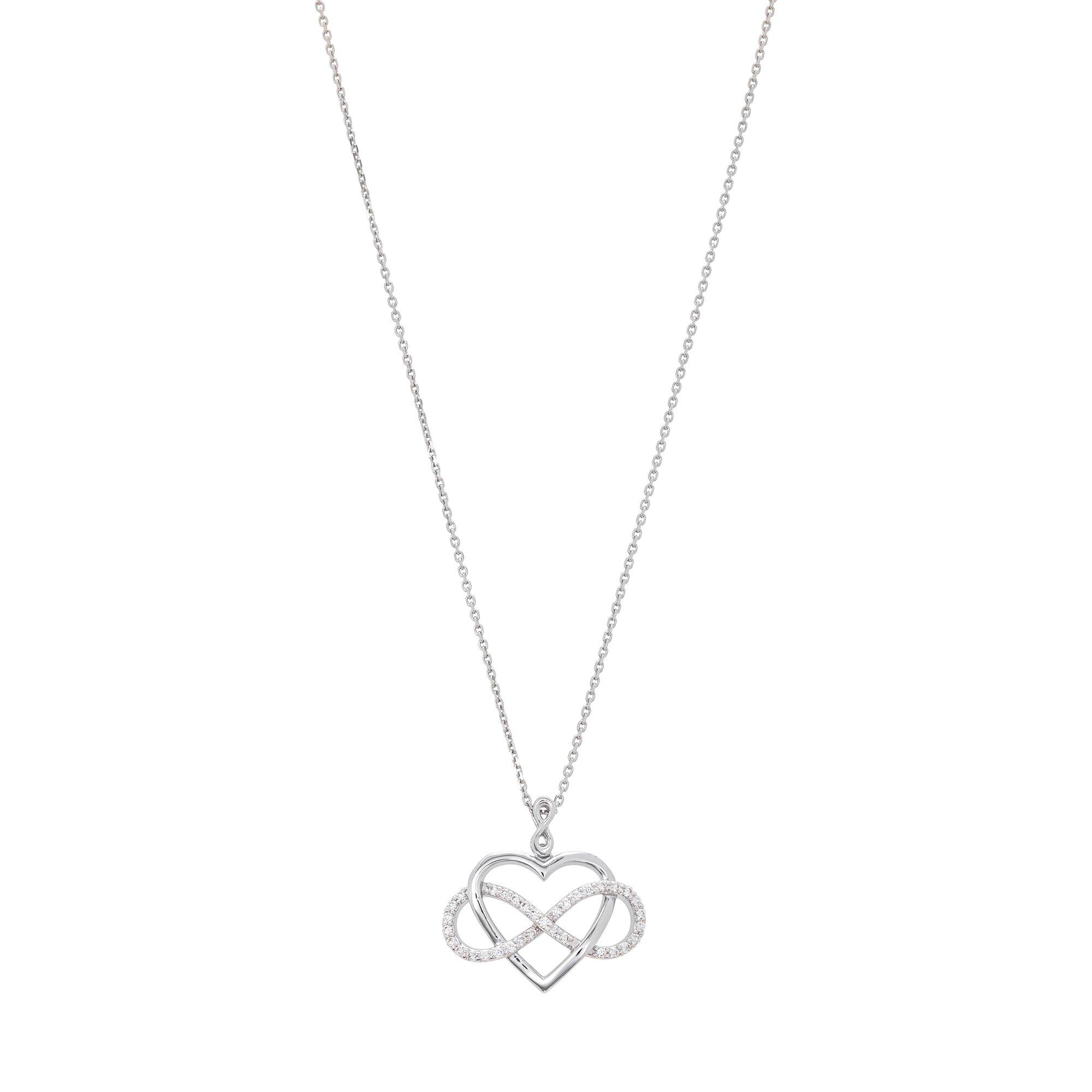 Ewige Liebe - diese elegante Halskette der Marke ZEN DIAMOND verbindet in Form eines Anhängers Symbole der Unendlichkeit mit einem Herzen, wobei das Infinity-Symbol mit funkelnden 0,20-karätigen Brillianten veredelt ist.