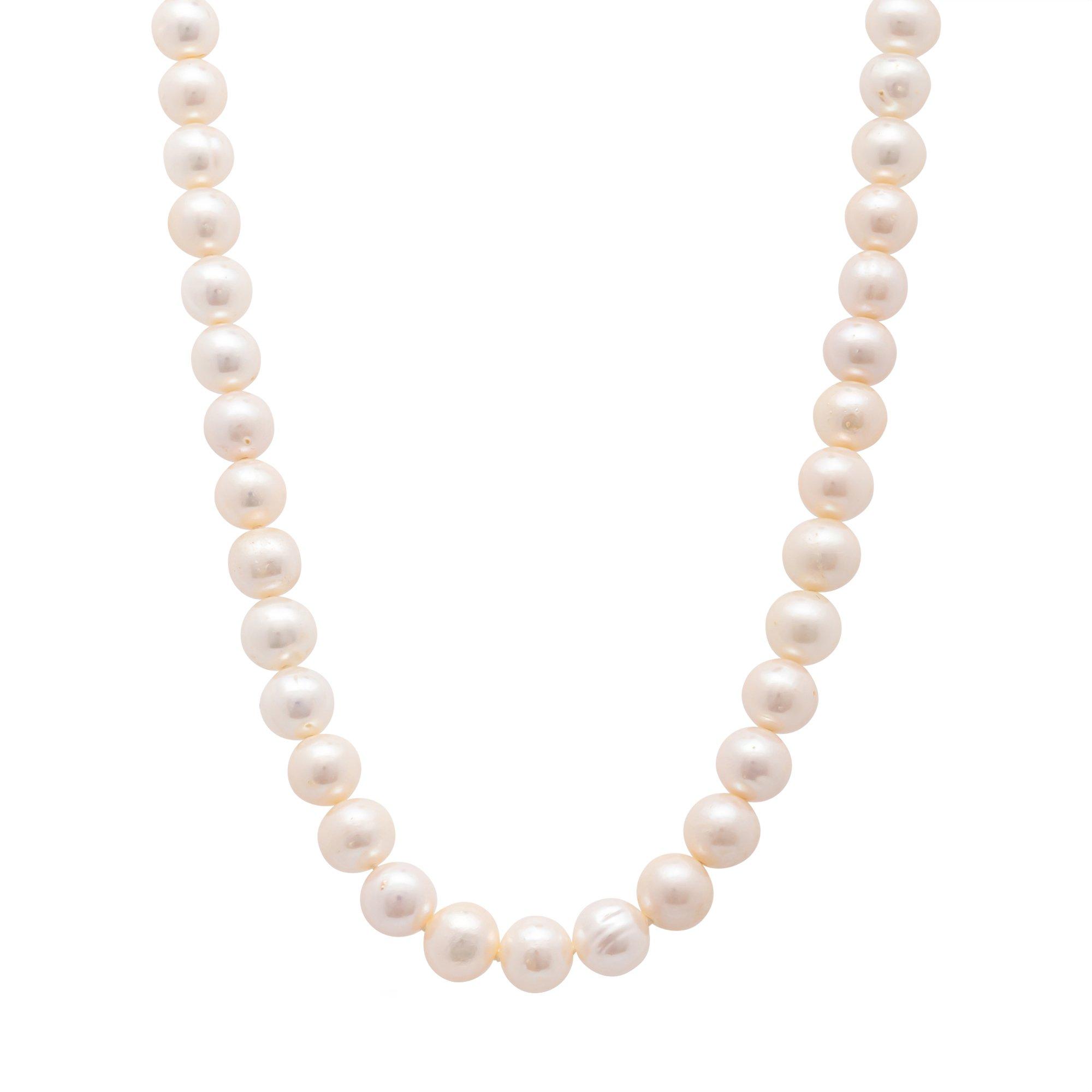 Klassisches Perlencollier von Puro aus Süsswasserperlen, deren Formung dieser eleganten Kette einen einzigartigen Touch verleihen.