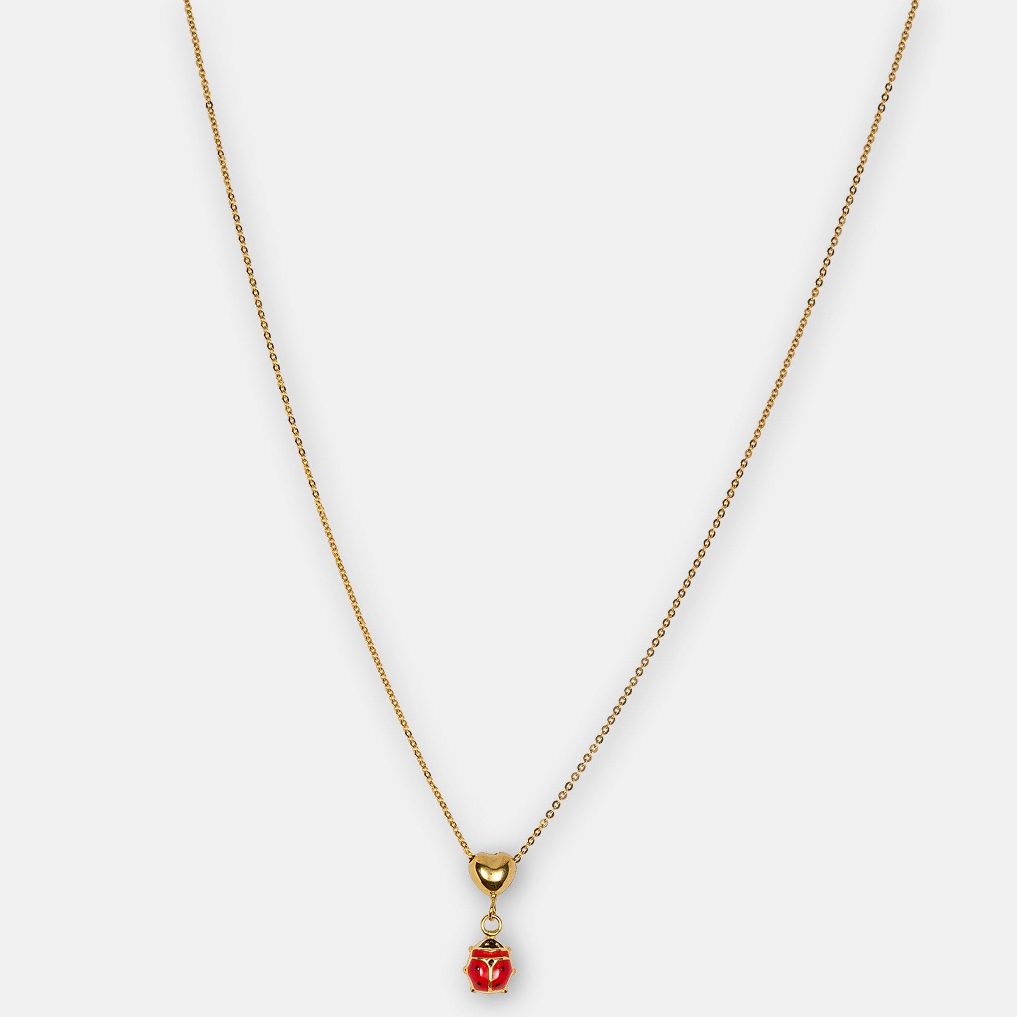 Ein strahlender kleiner Käfer zeichnet das zauberhafte Design dieser Halskette für Kinder aus. Das aus feinstem 750er Gelbgold angefertigte Schmuckstück der Marke Caramel besteht aus einer zierlichen Gliederkette, die in einen beweglichen Herz-Anhänger mündet. Der daran befestigte, süsse Marienkäfer bringt Kinderaugen zum Leuchten!