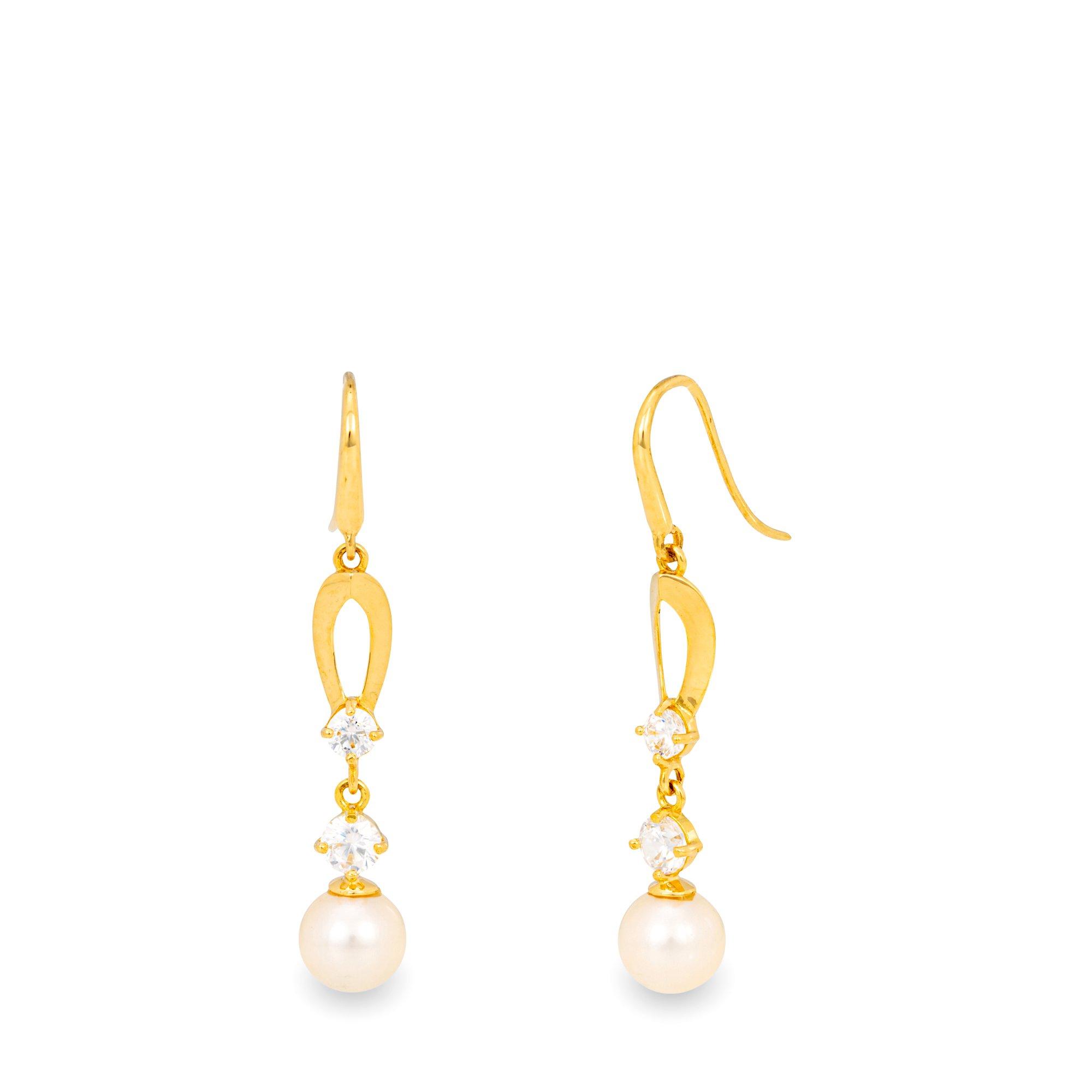 Elegant, klassisch, zeitlos: Diese Ohrhänger der Marke L'Atelier Gold 18 Karat by Manor bestechen durch ihre unschlagbare Kombination aus filigranen Gold-Elementen, funkelnden Zirkonia-Steinen sowie schimmernden Süsswasserperlen.