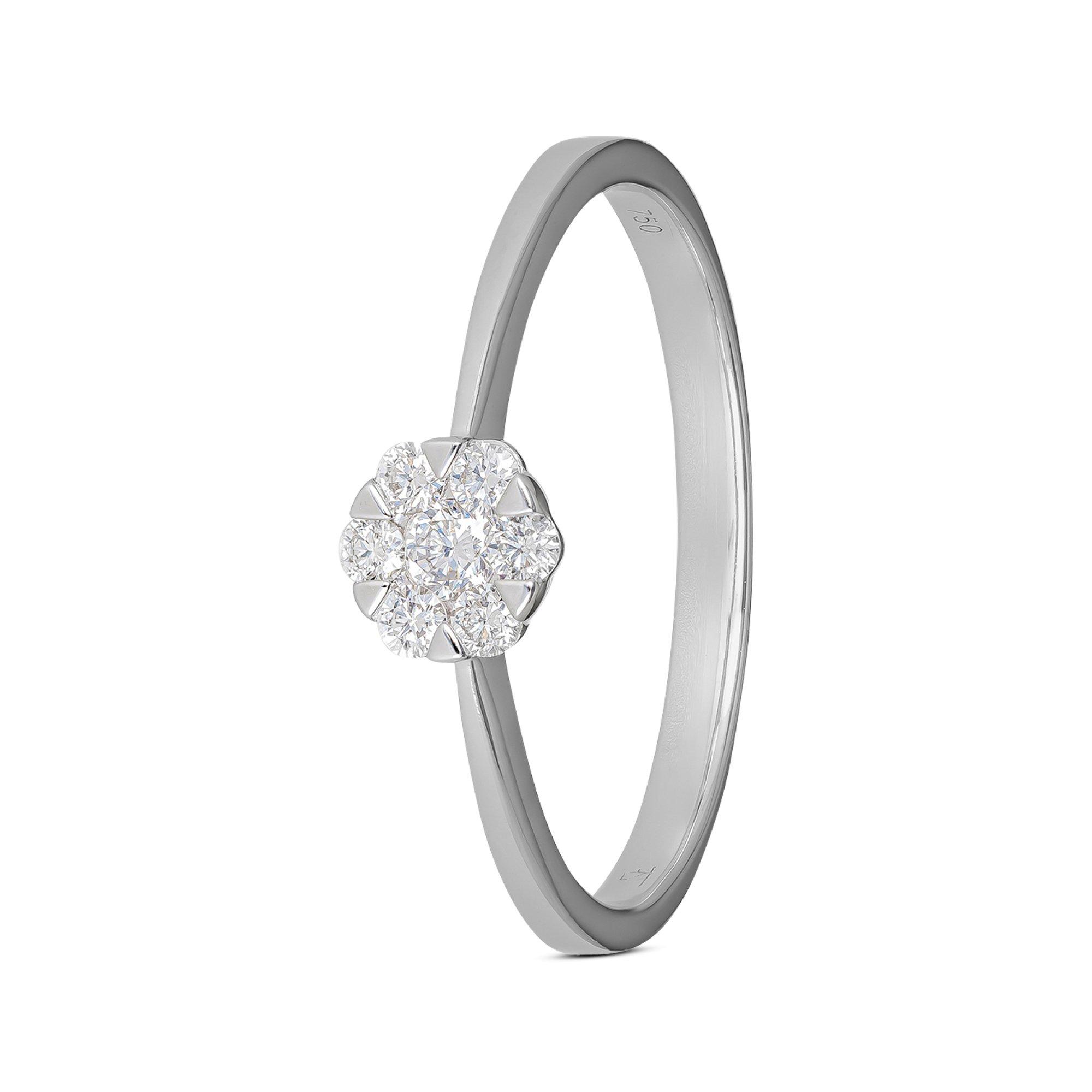 Der filigrane Ring in 18 Karat Weissgold inszeniert 7 Diamanten in 0.17 Karat mit Brillantschliff. Das runde Schmuckelement ordnet die gleich grossen Schmucksteine blumenförmig an und zaubert einen Hauch funkelnder Verspieltheit an die Hand. Eine zarte Komposition, welche grosse Gefühle zum Ausdruck bringt.
