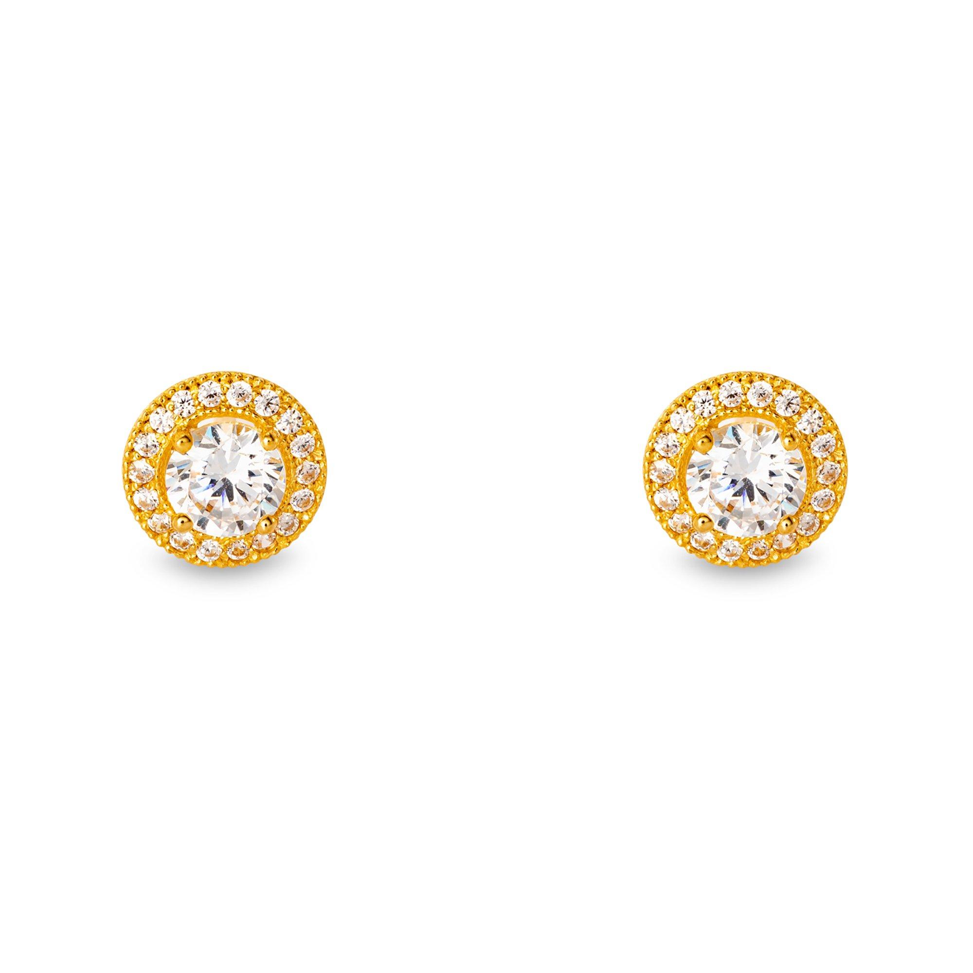 Diese edlen Ohrstecker der Marke L'Atelier Gold 18 Karat by Manor brillieren mit ihrem klassisch-eleganten Design. Das Herzstück bildet jeweils ein runder funkelnder Zirkonia-Stein, welcher wiederum von einem Kranz aus einer Vielzahl von Glitzersteinen umarmt wird. Schmuckstücke für ganz besondere Augenblicke!