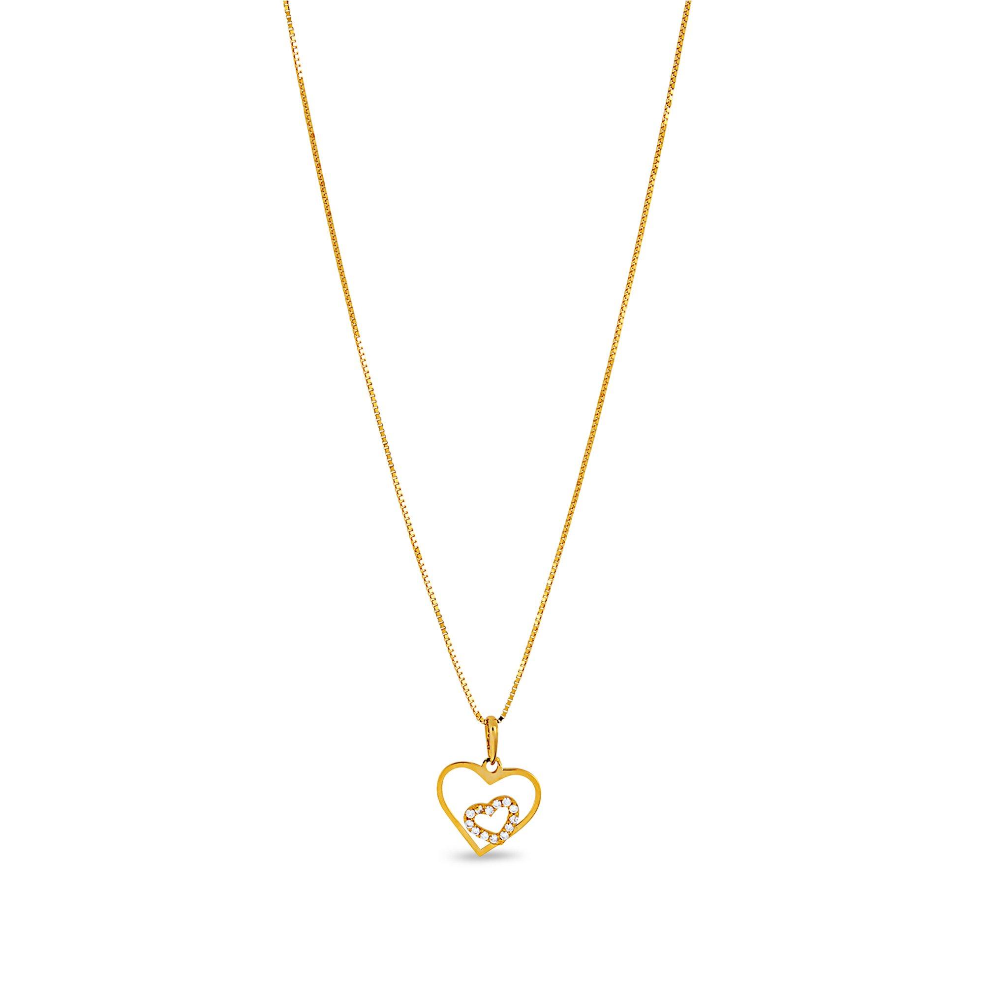 Eine hauchzarte Venezianerkette und ein Herz-im-Herz Anhänger mit Zirkonia veredelung - so kommt das süsse Collier der Marke L'Atelier Gold 18 Karat by Manor daher und bezaubert mit seinen funkelnden Reizen.