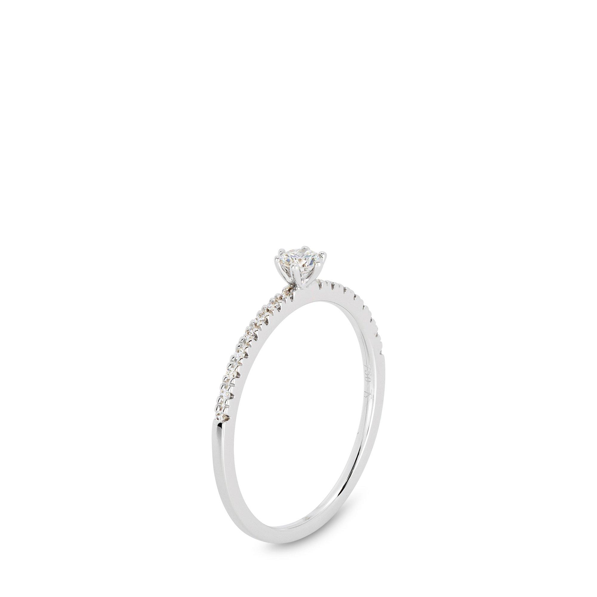 Dieser bezaubernde Solitärring der Marke Sergio Ferris brilliert mit seinem zeitlos-eleganten Design. Das Herzstück bildet ein runder, mit Krappen eingefasster Diamant. Dieser erhebt sich über einem hauchzarten Ringband, welches mit weiteren funkelnden Brillianten veredelt ist.
