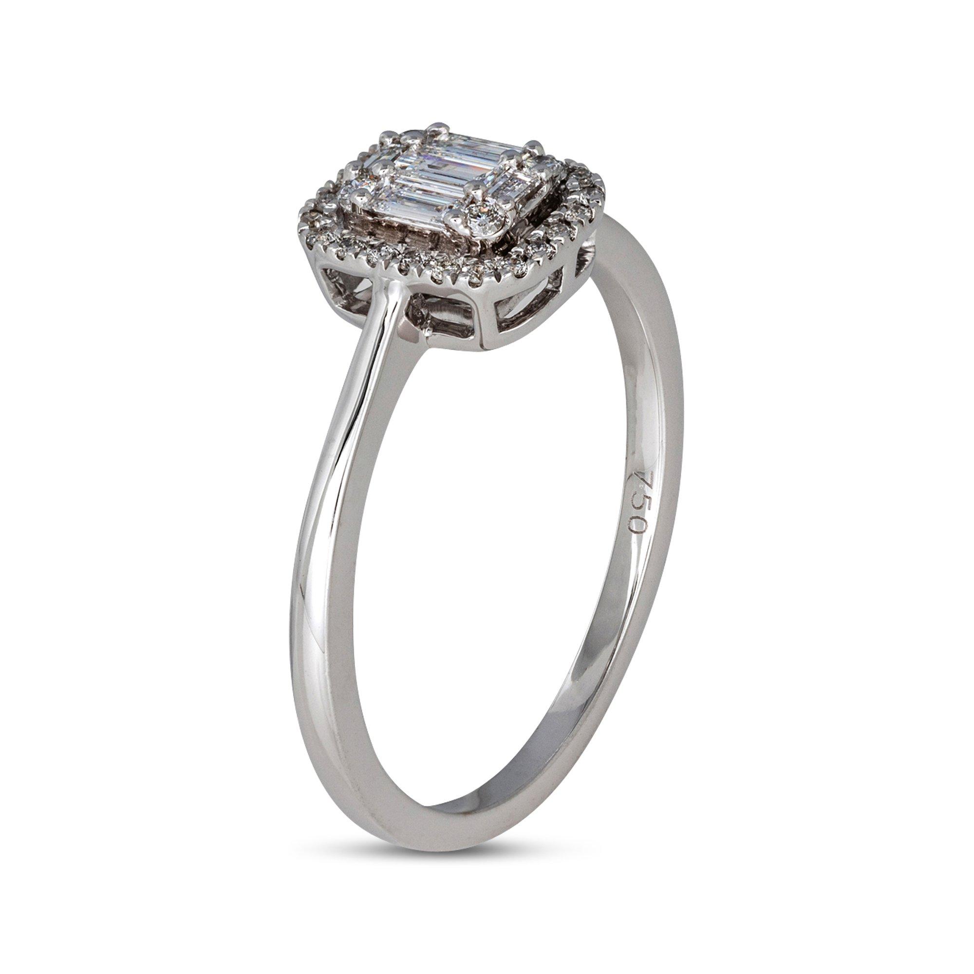 Dieser Weissgold Ring von Sergio Ferris verleiht dem Look einen Hauch von Luxus. Quadratische und rechteckige Brillianten sind mit Krappfassungen so angeordnet, dass das Ganze ein abgerundetes Rechteck ergibt und funkeln dabei um die Wette. Der Ring kommt in einer hochwertigen Schatulle und verspricht bei jedem Öffnen eine grosse Freude – vorallem beim erstmaligen Öffnen auf den Knien.