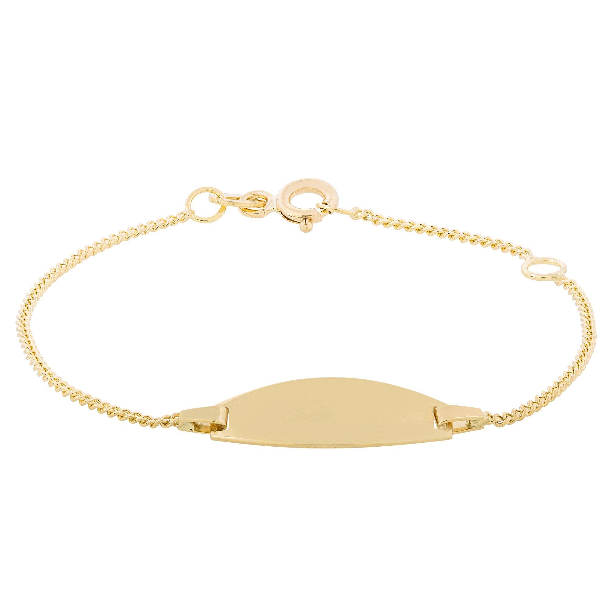 Ein traditionelles, aber immer spannendes Geschenk zur Geburt ist ein Gravurarmband. Dieses Modell der Marke Caramel besteht aus edlem, 18-karätigen Gelbgold, deren Glieder die Form einer überdrehten Flachpanzerkette bilden. In ihrer Mitte findet sich die klassisch gewölbte Gravurplatte. Zur individuellen Anpassung können Sie das Armkettchen in Ihrem Manor Warenhaus gravieren lassen.