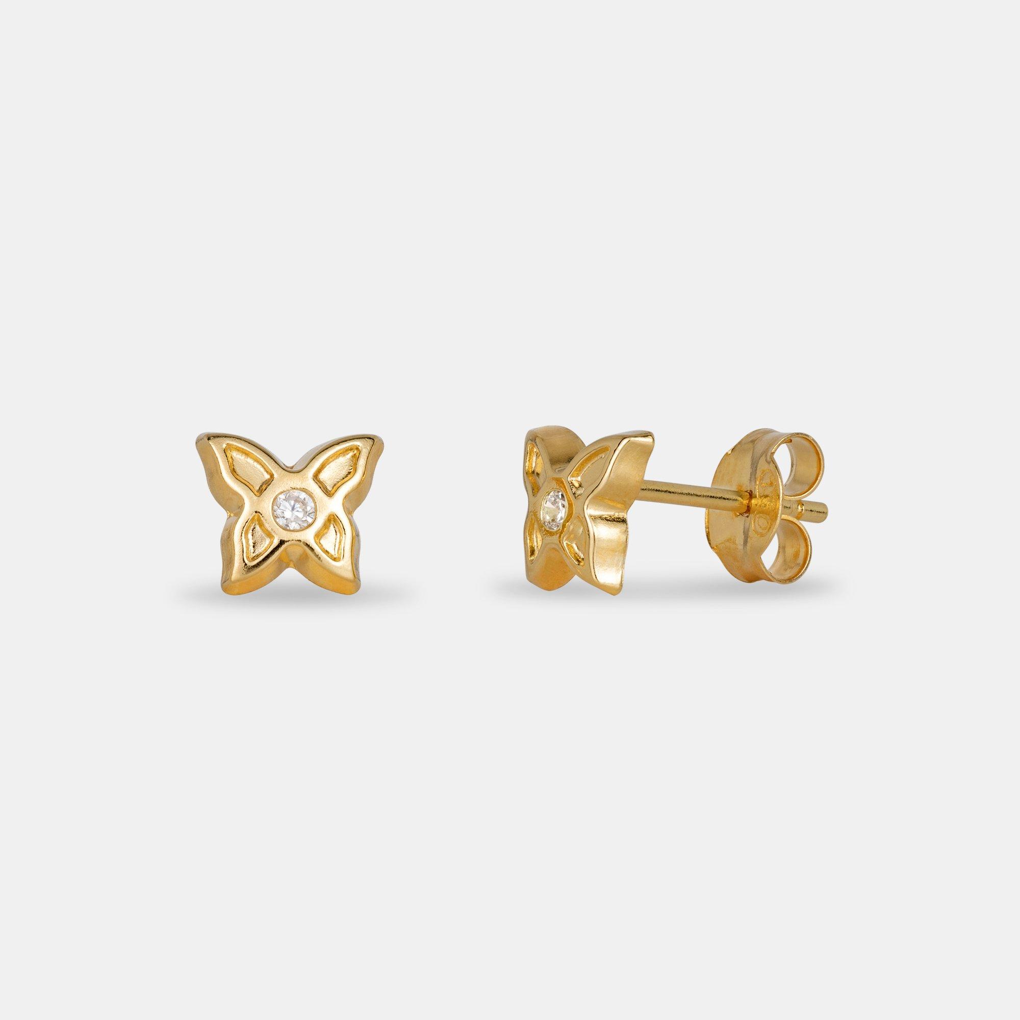 Eine zauberhafte Symbiose feinsten Gelbgoldes mit einem funkelnden Zirkonia bildet das Herzstück dieses Ohrstecker-Paares der Marke Caramel. Der filigran gearbeitete Kinderschmuck macht sich hervorragend als liebevolles Geschenk zu einem besonderen Anlass.