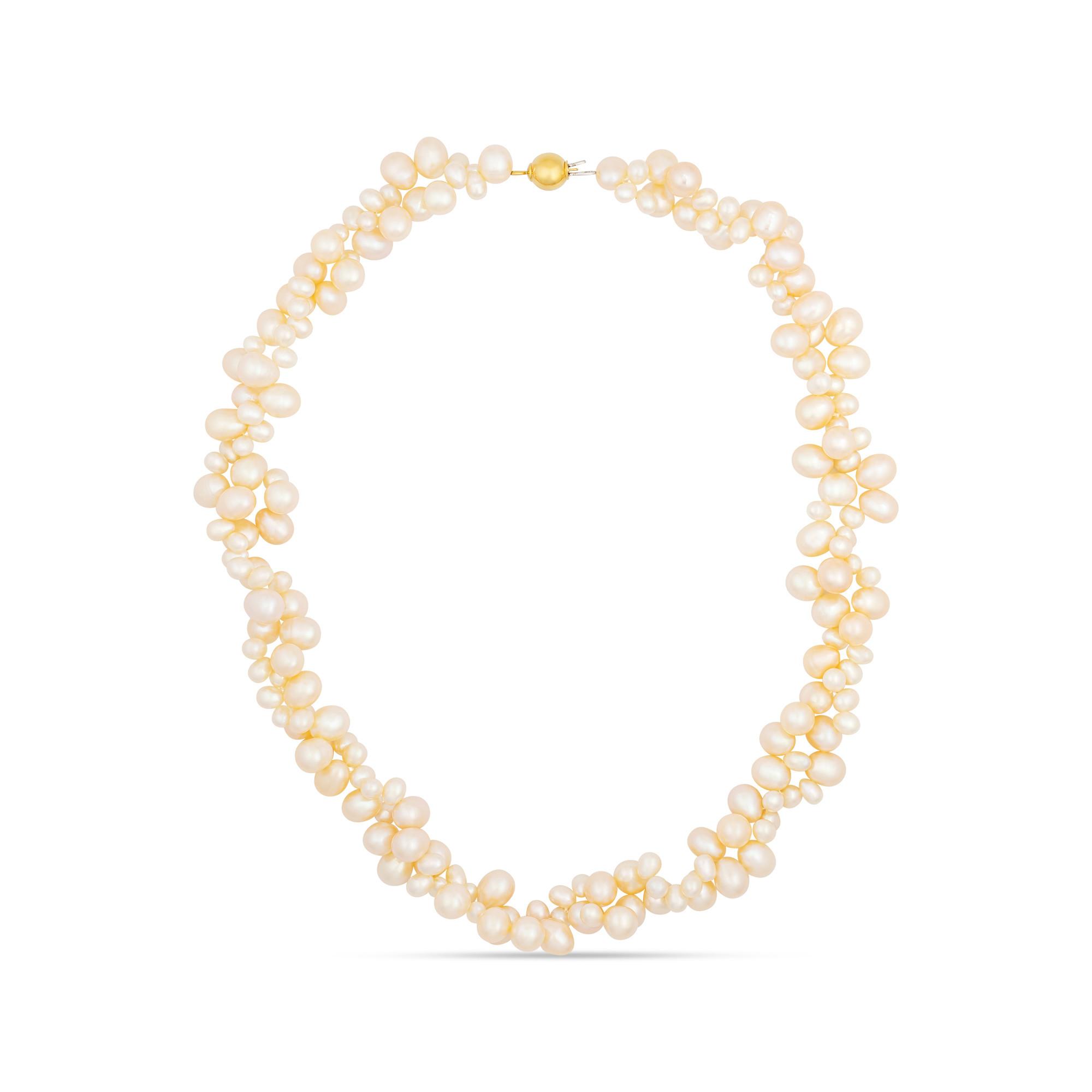 Diese Perlenkette von Puro ist aus drei Perlensträngen gefertigt, aus Süsswasserperlen mit unterschiedlichen Grössen. Das kurze, anliegende Collier lässt sich elegant per Karabinerverschluss schliessen.