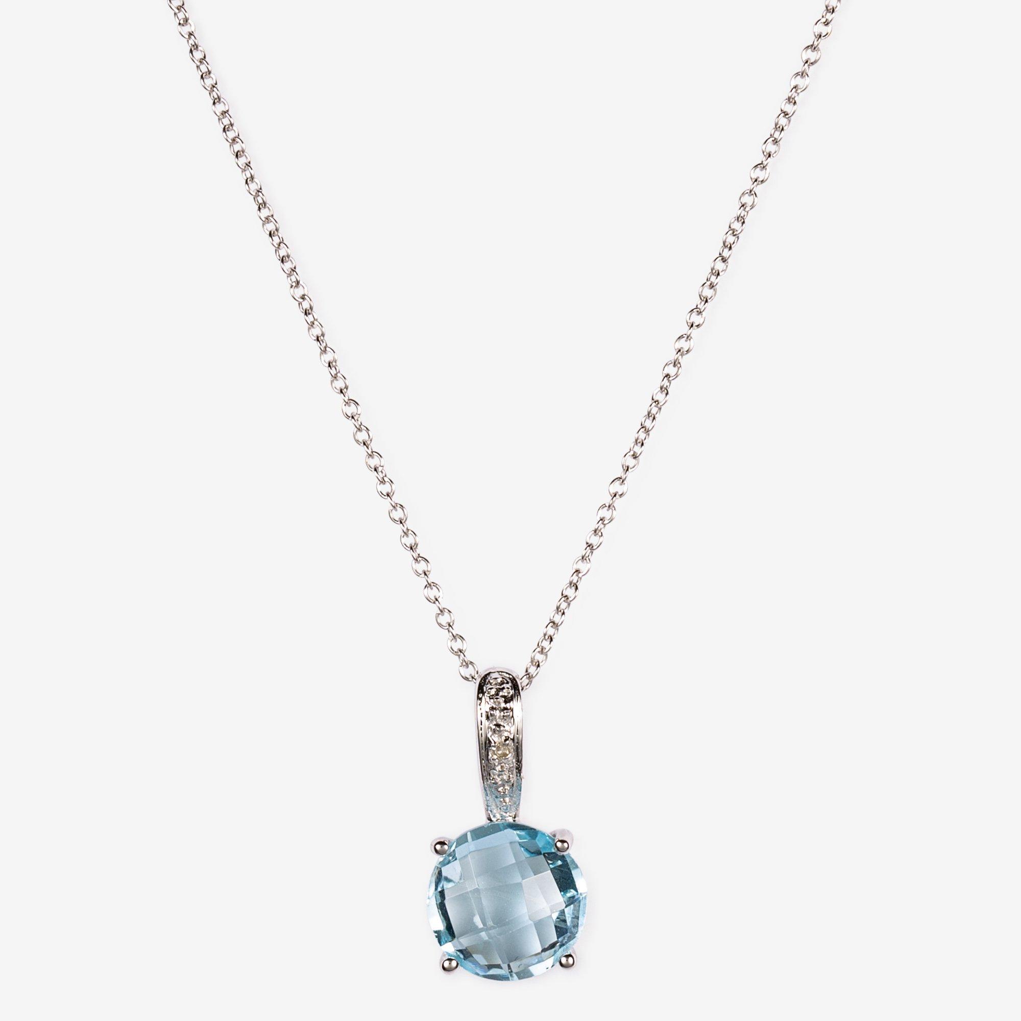 Ein sinnliches Schmuckstück für die Ewigkeit: Die zarte Gliederkette aus feinstem Weissgold mündet in einen Steg, der mit einem facettierten Diamanten besetzt ist. Dieser führt zu dem eigentlichen Herzstück der edlen Halskette von L'Atelier 18 Carat Gold: Ein edel facettierter, hellblauer Topaz fasziniert mit einer unnachahmlich schönen Leuchtkraft, die Sie immer wieder neu in ihren Bann ziehen wird.