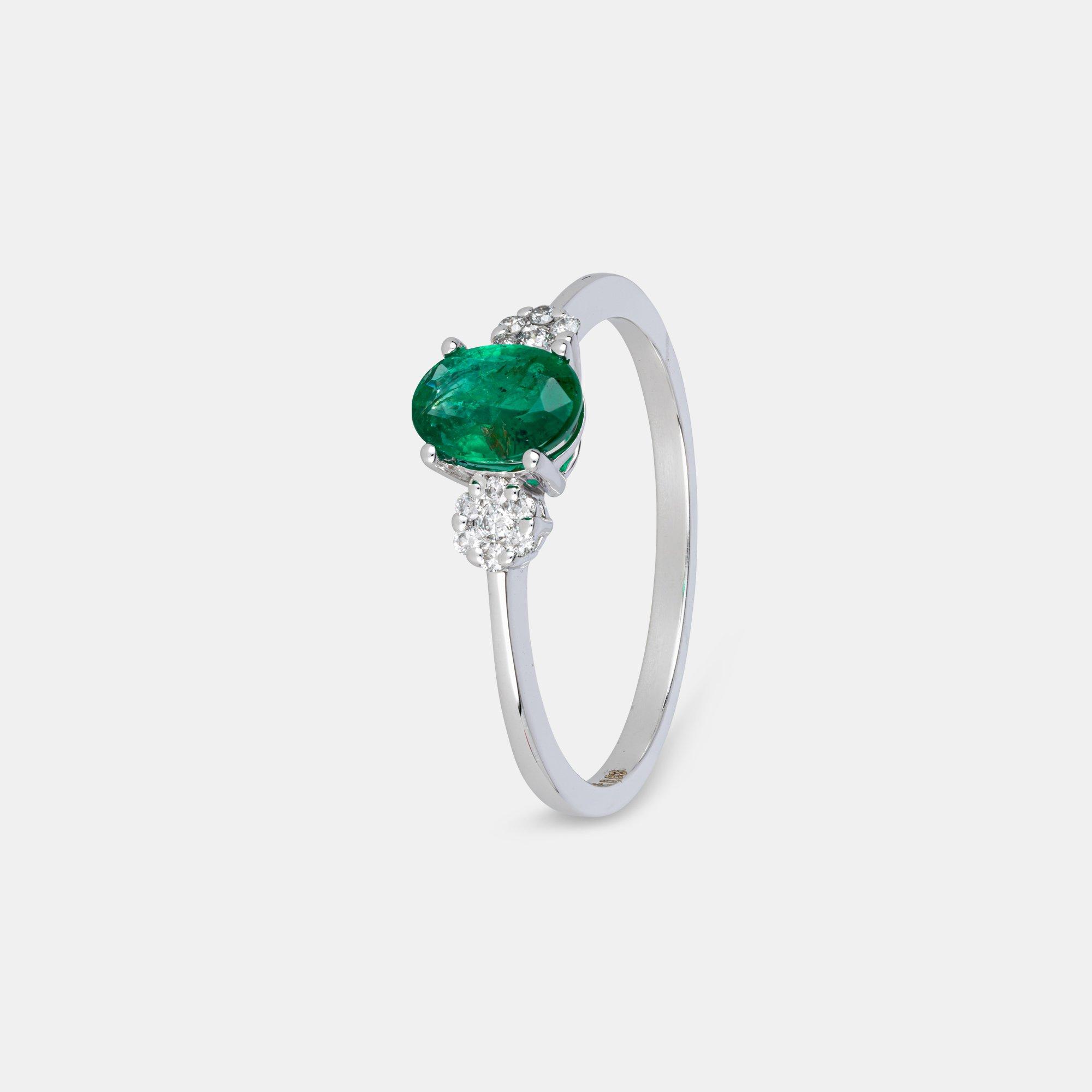 Dieser hochwertige Weissgold Ring von ZEN Diamond ist ein richtiger Hingucker. Das Highlight des Rings ist ein 0.63 karätiger Emerald in Krappenfassung, welcher links und rechts von je sechs Brillianten begleitet wird. Dieser Ring veredelt jedes Outfit und eignet sich besonders zu speziellen Anlässen.