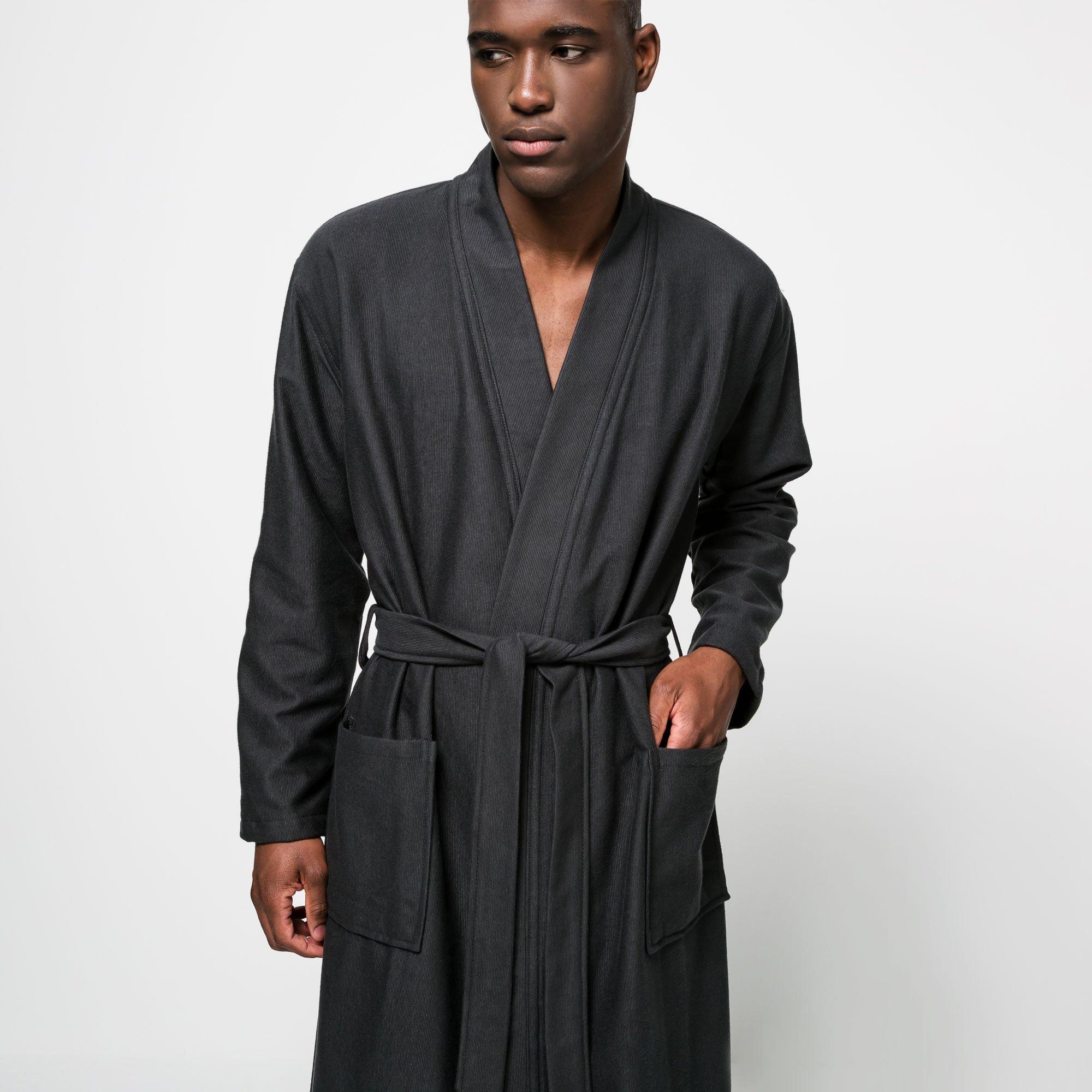 Der lange Bademantel ist besonders praktisch und bietet Komfort sowie Stil für entspannende Momente. Er wird mit einem Bindegürtel geschlossen und hat zwei Eingrifftaschen. Dank seiner Materialzusammensetzung ist er nach der Wäsche schnell wieder einsatzbereit für die Zeit des Wohlfühlens und Entspannens.
