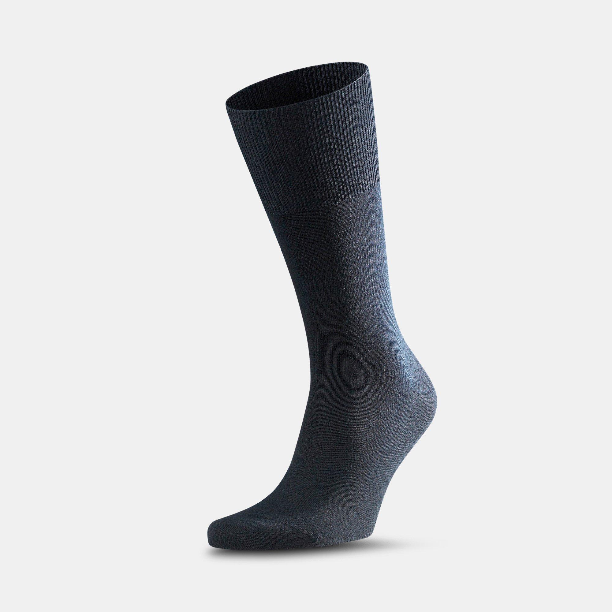 Dieser zeitlos elegante Business-Strumpf der Qualitätsmarke präsentiert sich mit feiner Baumwolle auf der Innenseite und regulierender Merinowolle auf der Aussenseite, was für aussergewöhnlichen Komfort sorgt.
