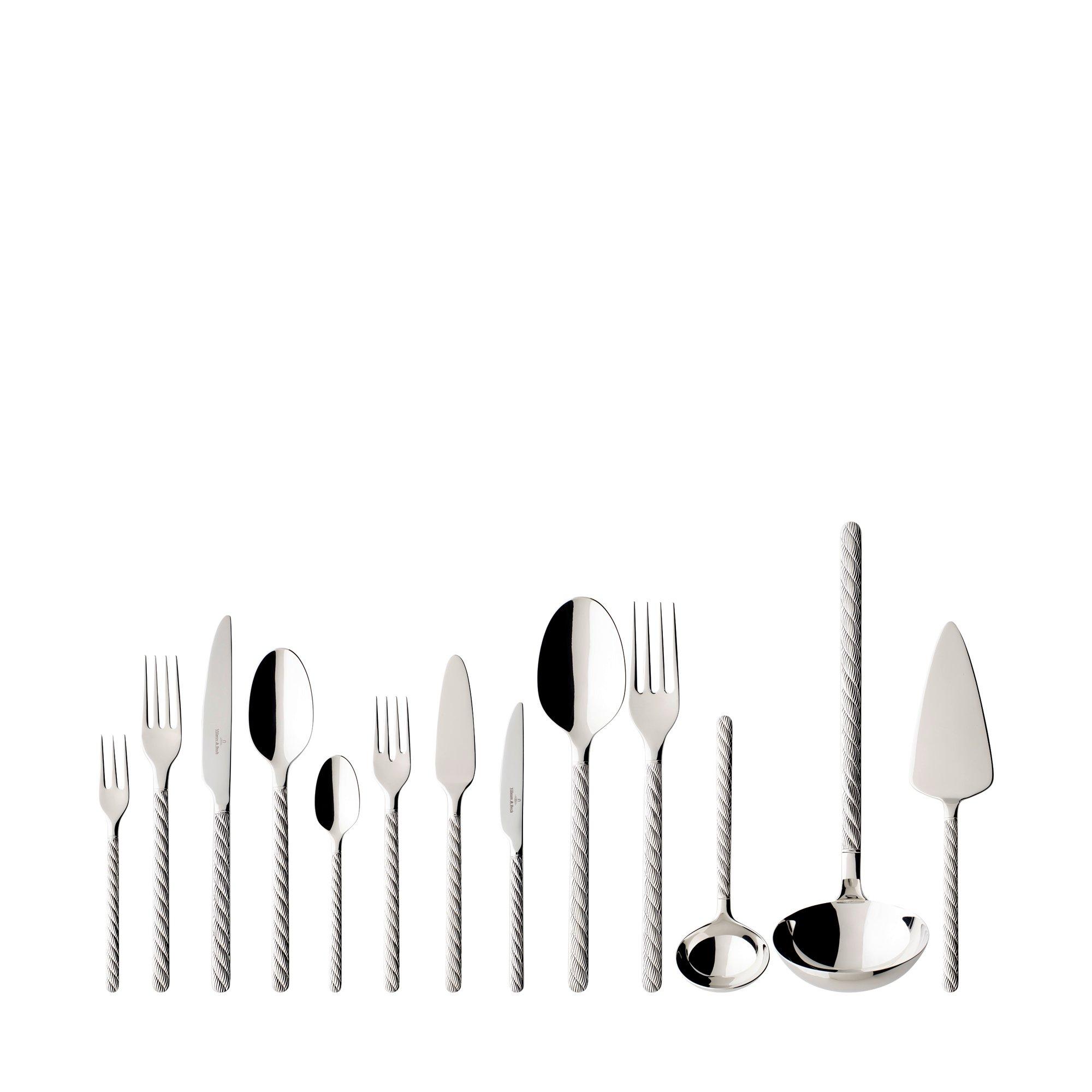 Ein umfangreiches Besteck-Set von Villeroy & Boch für 12 Personen, das mit seinem markanten Seil-Relief besonders gut in der Hand liegt. Das Set beinhaltet neben Tafelbesteck auch Servierbesteck: