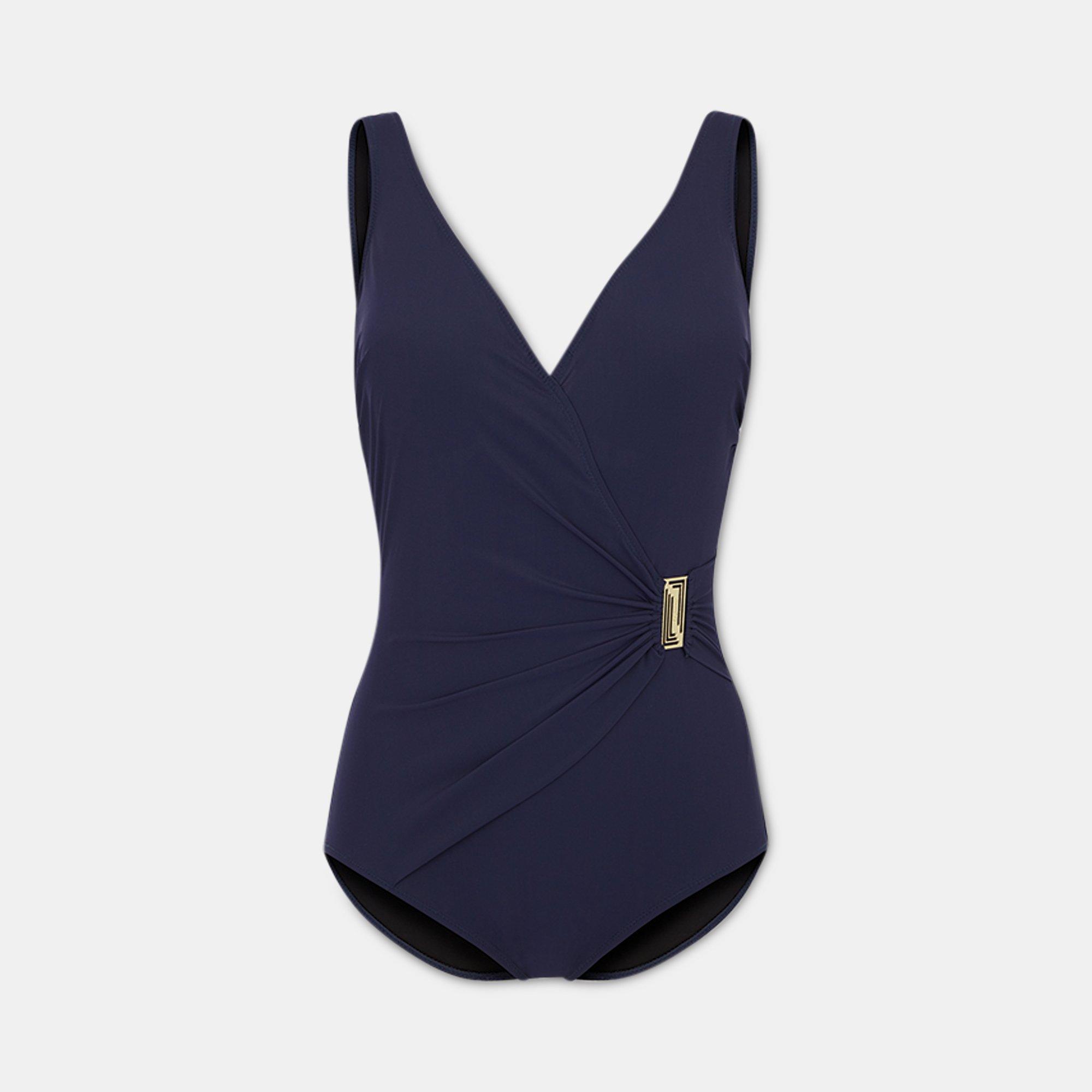 Dieser elegante Badeanzug von Felina zaubert mit seinem Shaping-Einsatz eine atemberaubende Silhouette. Die eingearbeiteten Softcups sorgen für einen perfekten Halt und formen ein schönes Dekolleté. Des Weiteren überzeugt der unifarbene Badeanzug mit einem V-Ausschnitt, Raffungen sowie einem dekorativen Metallplättchen auf der Vorderseite und mit einem schönen, ovalen Ausschnitt auf der Rückseite.