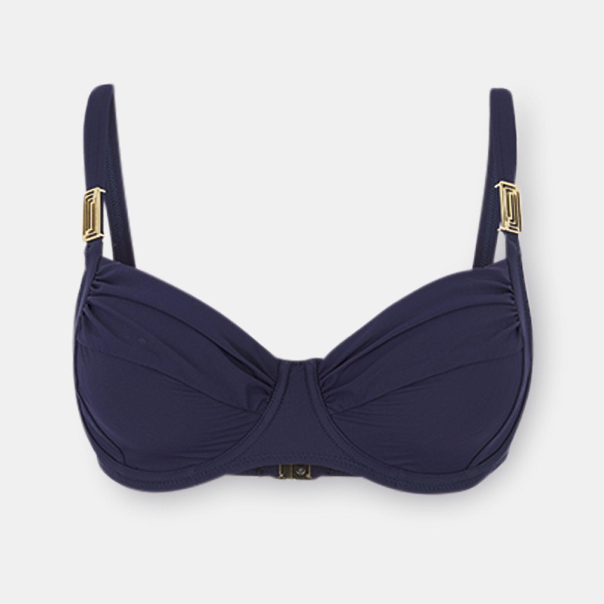 Dieses Bikini-Top von Felina ist ein Hingucker, dafür sorgen die goldfarbene Verzierung vorn an den Trägern sowie die leichten Raffungen an den Cups. Was den Tragekomfort betrifft, überzeugt das Top mit eingearbeiteten Bügeln für ein schönes Dekolleté sowie mit regulierbaren Trägern für einen optimalen Sitz.