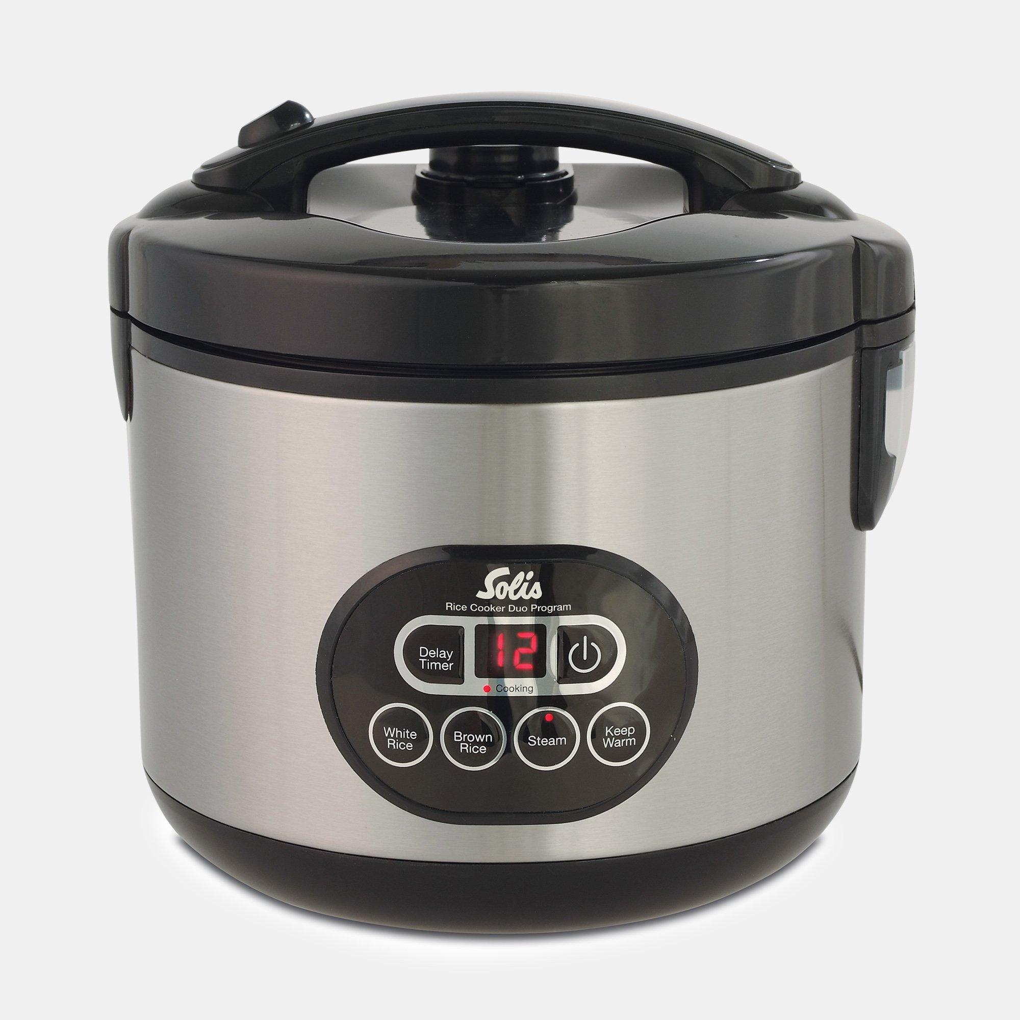 Reiskocher und Steamer in einem. Mit dem Solis Reiskocher 2 in 1 können Sie nicht nur Ihren Reis ideal kochen, sondern auch Gemüse gesund zubereiten. Die automatische Warmhaltefunktion und die Timerfunktion machen diesen Reiskocher besonders. Der ideale Küchenhelfer für eine gesunde Ernährung.