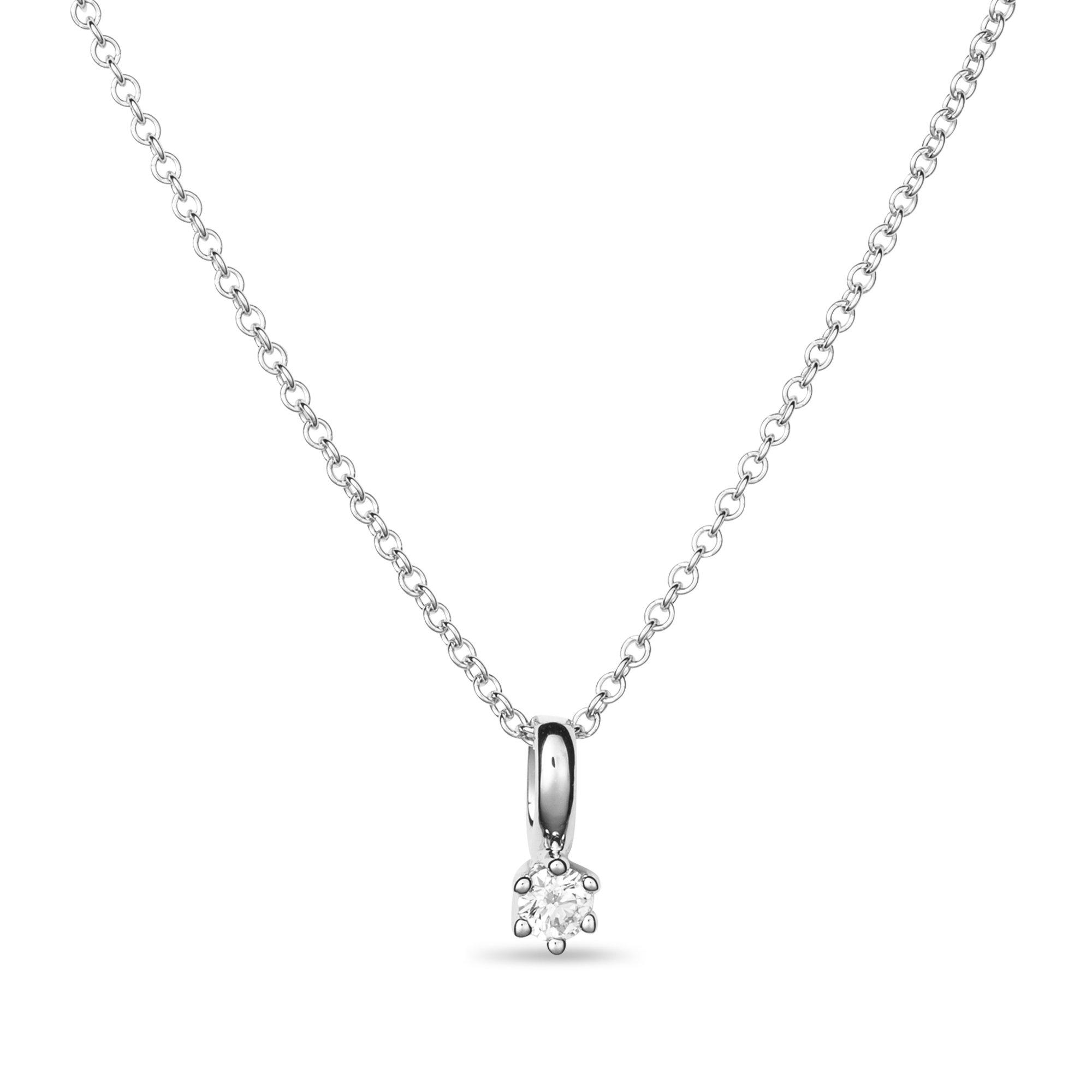 Ein betörend funkelnder Brillant in einer zarten, sechsgriffigen Krappenfassung bildet das Herzstück dieses Colliers des Schweizer Schmuckherstellers Sergio Ferris. Die filigrane Gliederkette besteht ebenso wie die Fassung aus poliertem Weissgold, welches das Leuchten des Brillanten stilvoll unterstreicht.