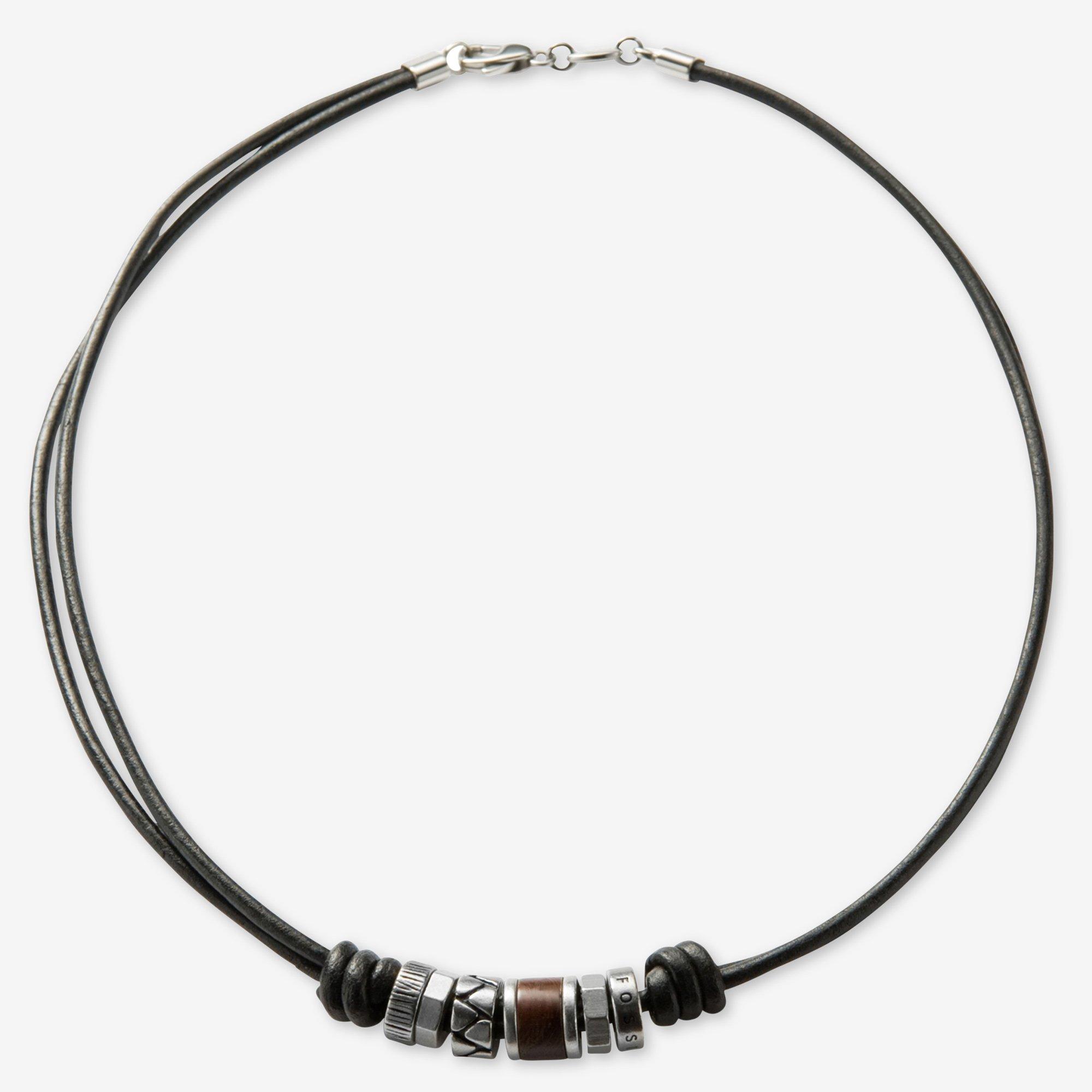 Maskuline Halskette der Marke Fossil mit unterschiedlichen Anhängern, die gemeinsam ein harmonisches Ganzes ergeben.