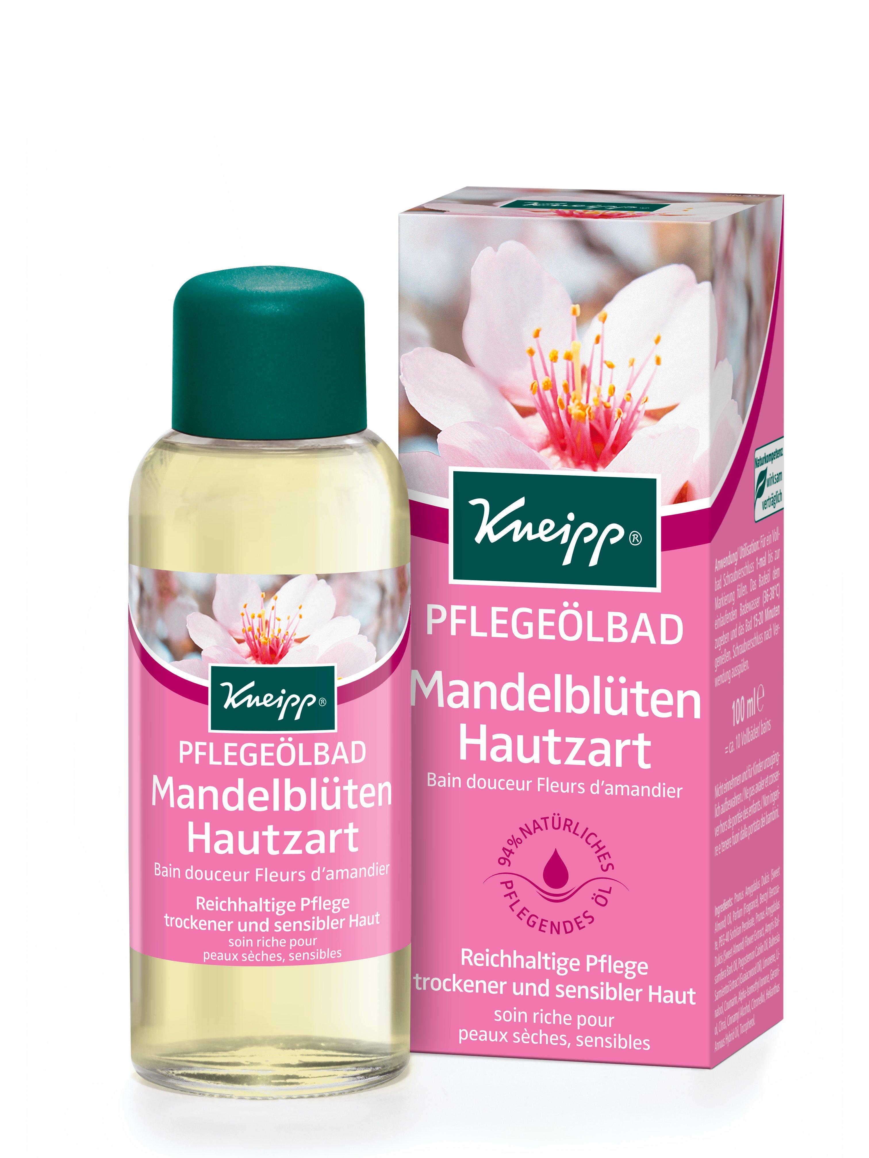 Das sinnlich duftende Kneipp® Pflegeölbad Mandelblüten Hautzart bietet Ihrer Haut die optimale Kombination aus aktivem Schutz und fühlbarer Pflege. Mit 94% reinem Mandelöl unterstützt es die Aufrechterhaltung des natürlichen Hautschutzmantels und hinterlässt ein geschmeidig weiches Hautgefühl. Mandelöl zeichnet sich durch seinen besonders hohen Anteil an essentiellen Fettsäuren aus. Das rückfettende Pflanzenöl zieht sehr schnell in die Haut ein und gleicht Feuchtigkeitsverluste auf natürliche Weise aus. Im Zusammenspiel mit der wohltuenden Wirkung warmen Wassers entfaltet das fette Öl seine natürliche Pflegewirkung.