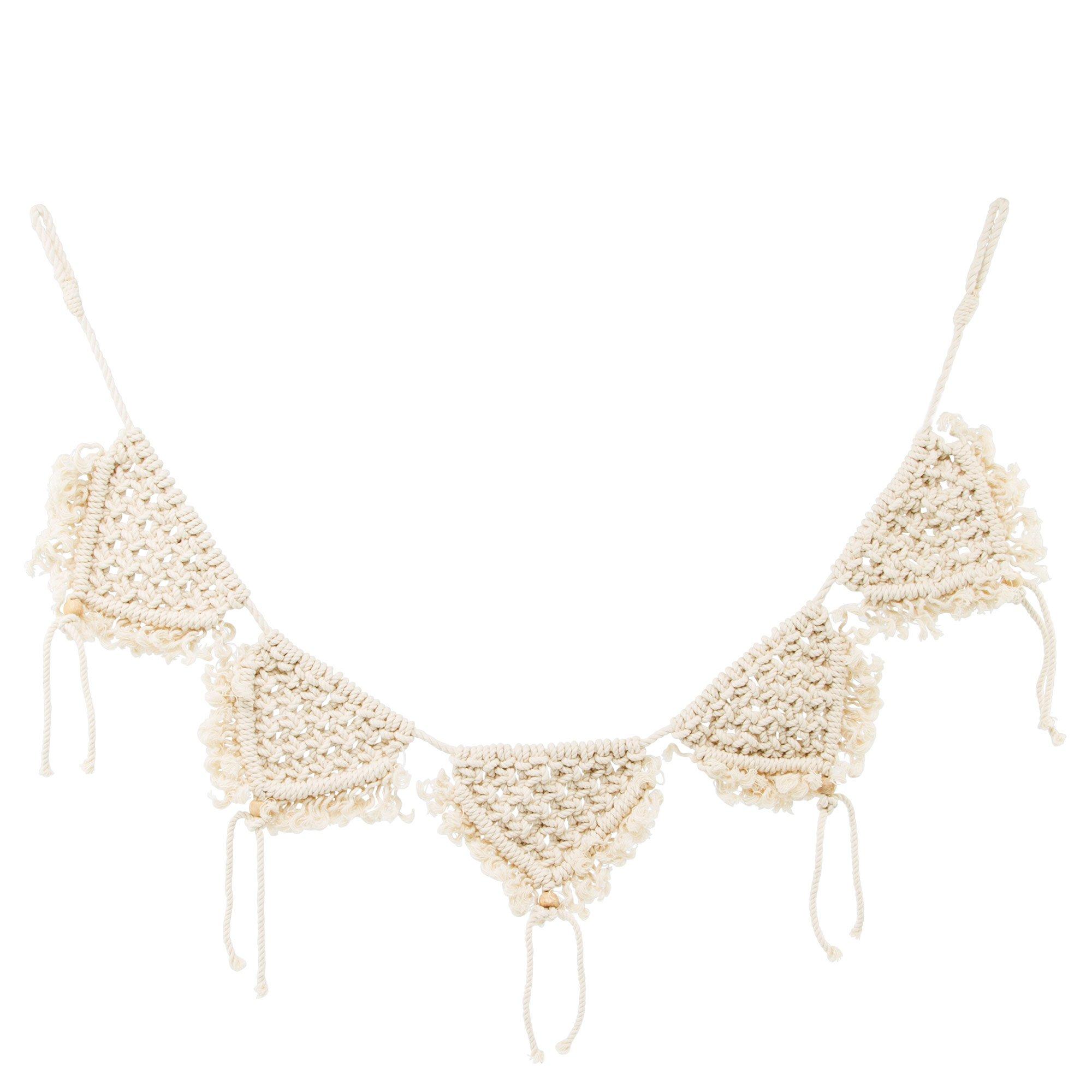 Die Wimpelkette Macrame begeistert durch eine verspielte Knüpfung. Zarte Fransen am Rand rahmen die Kette ein.