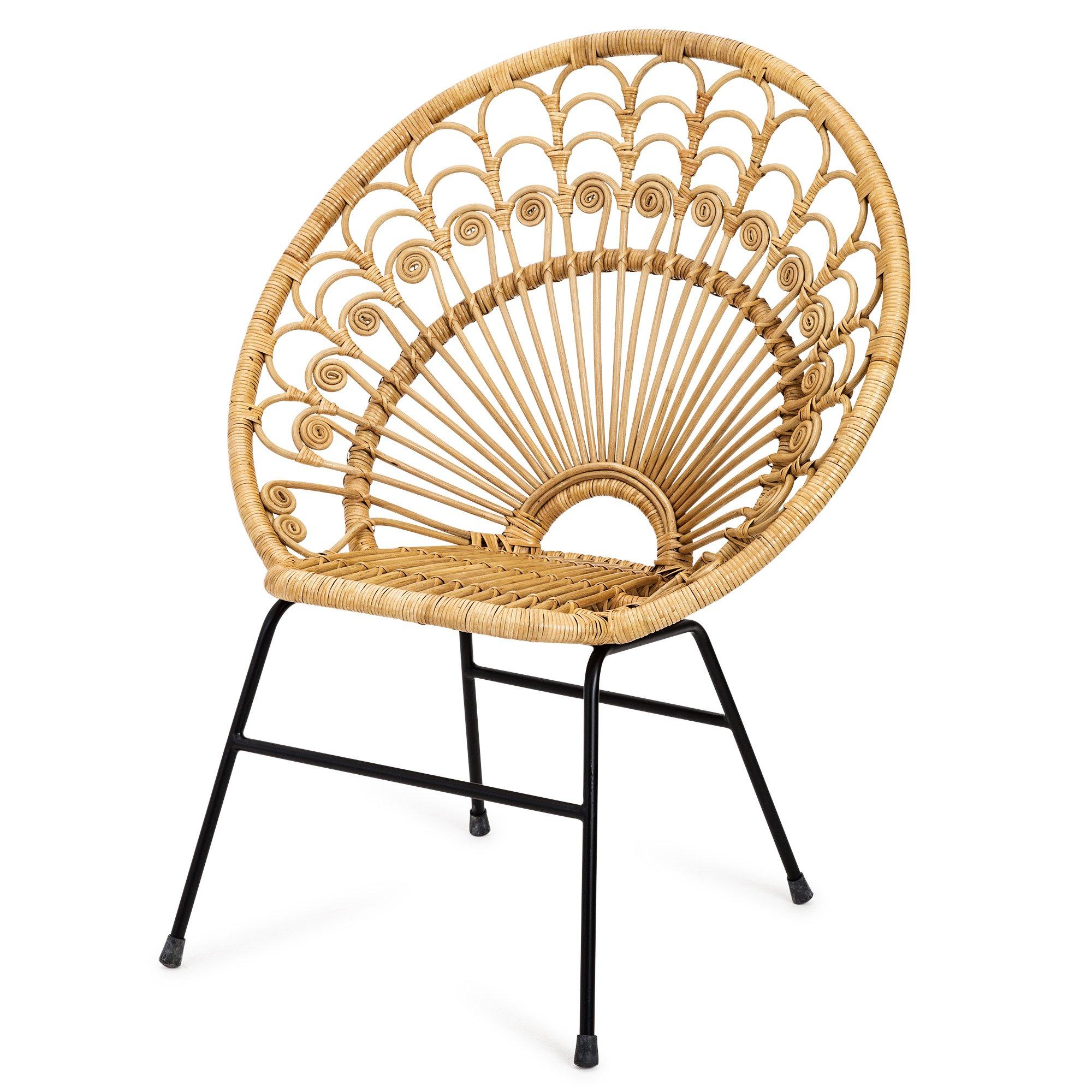 Ein Eyecatcher in Ihrem Wohnraum, Wintergarten oder Eingangsbereich: Der Rattanstuhl besticht durch ein verspieltes Design, von dem sich die Stuhlbeine abheben.