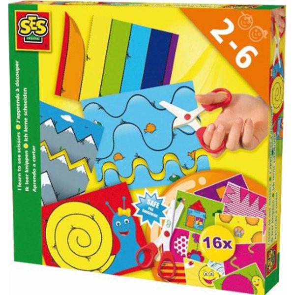 Schneiden, Schere, Papier;Ich lerne schneiden - Set von SES. DER Topartikel von SES:lerne den Umgang mit der Schere. Im Set enthalten ist eine Sicherheitsschere aus Kunsstoff, die nur Papier schneidet, keine Textilien oder Haare. Mit der Schere kannst Du dann entlang der vorgezeichneten Linien auf einem der bunten Blätter schneiden. So macht Schneiden lernen Spass. Inhalt: 16 bunte Schneidvorlagen in unterschiedlichen Schwierigkeitsstufen, abgerundete Sicherheitsschere aus Kunststoff.