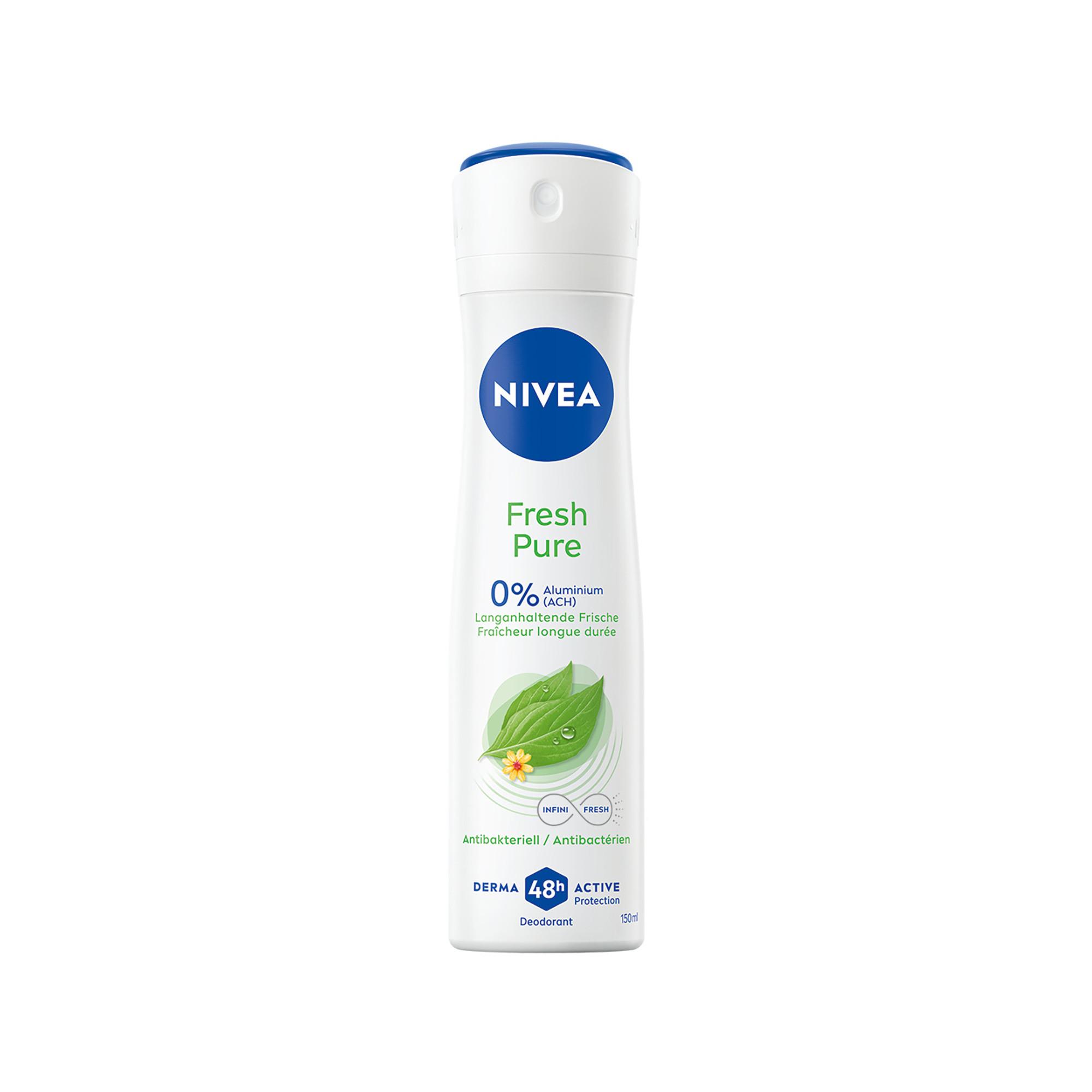 Das NIVEA Deodorant Fresh Pure Spray sorgt für ein langanhaltendes Gefühl von Reinheit und Frische – und das ganz ohne Aluminium (ACH). Die milde Formel bietet 48 Stunden Deodorant-Schutz vor Körpergeruch und lässt die Haut frei atmen.
