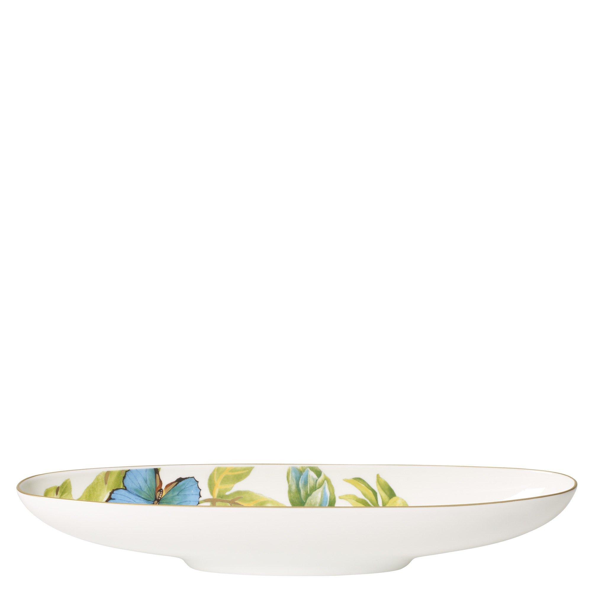 Strahlende Farben und exotische Motive machen die Kollektion Amazonia aus hochwertigem Premium Bone Porcelain zu einem echten Blickfang, der bestens mit den edlen Kollektionen Anmut und Modern Grace harmoniert. Kolibris, Schmetterlinge, Orchideen und mehr: die detailreichen, farbenfrohen Abbildungen von Flora und Fauna des Amazonas-Regenwalds wecken Erinnerungen an die grossen Entdeckungsreisen Alexander von Humboldts. Bereits seit 1748 steht Villeroy & Boch für edles Porzellan höchster Qualität. Diese attraktive Schale eignet sich besonders zum Servieren kleiner Häppchen oder als Teil einer ansprechenden Tischdekoration. Spülmaschinenfest aber wegen der Gold-Akzente nicht geeignet für die Mikrowelle. Bringen Sie einen Hauch Noblesse auf Ihre Tafel mit Villeroy & Boch.