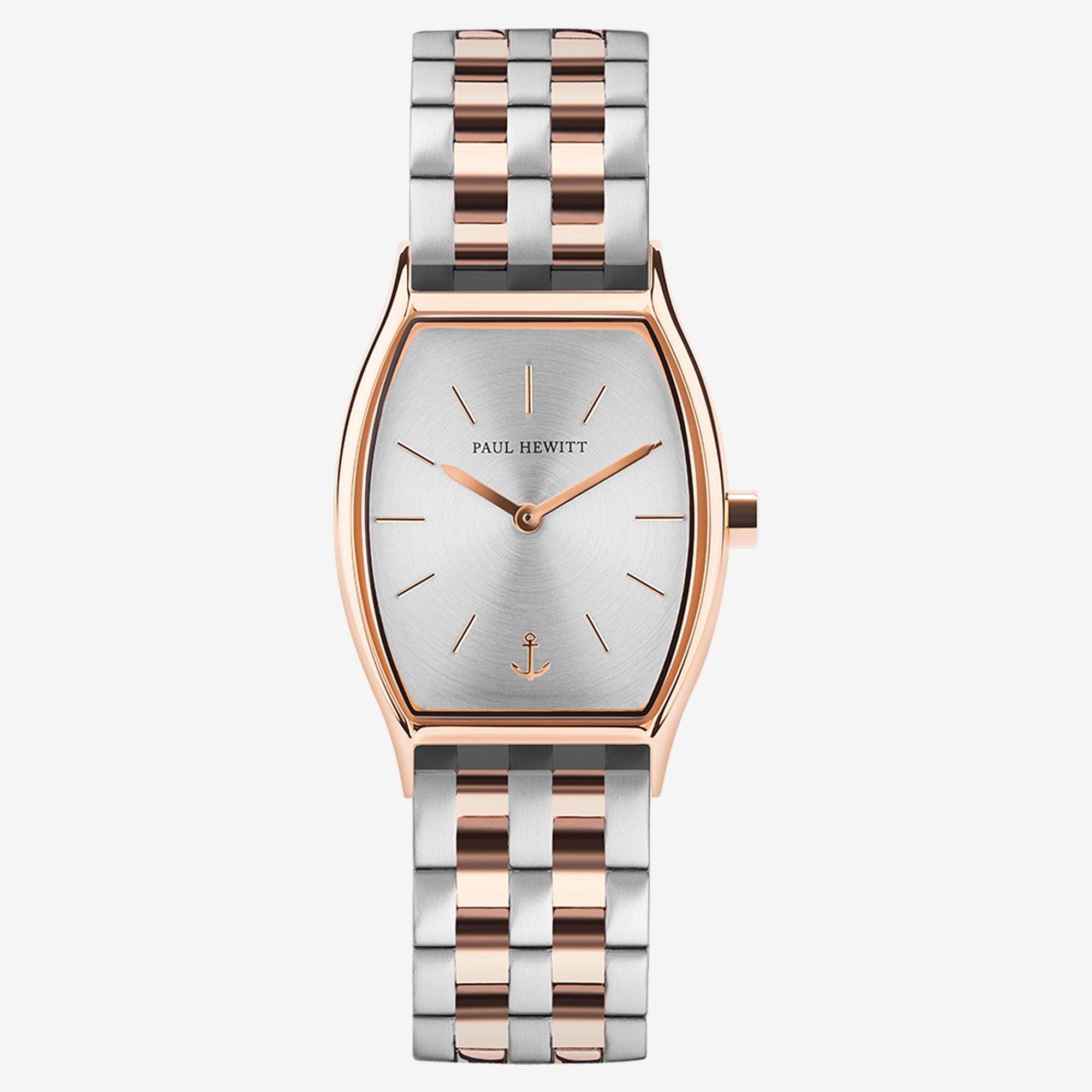 Eine klassische Analoguhr mit einem zweifarbigen Design von der Marke Paul Hewitt. Den Kombinationsmöglichkeiten sind keine Grenzen gesetzt! Der elegante Look passt jederzeit und zu jedem Anlass.
