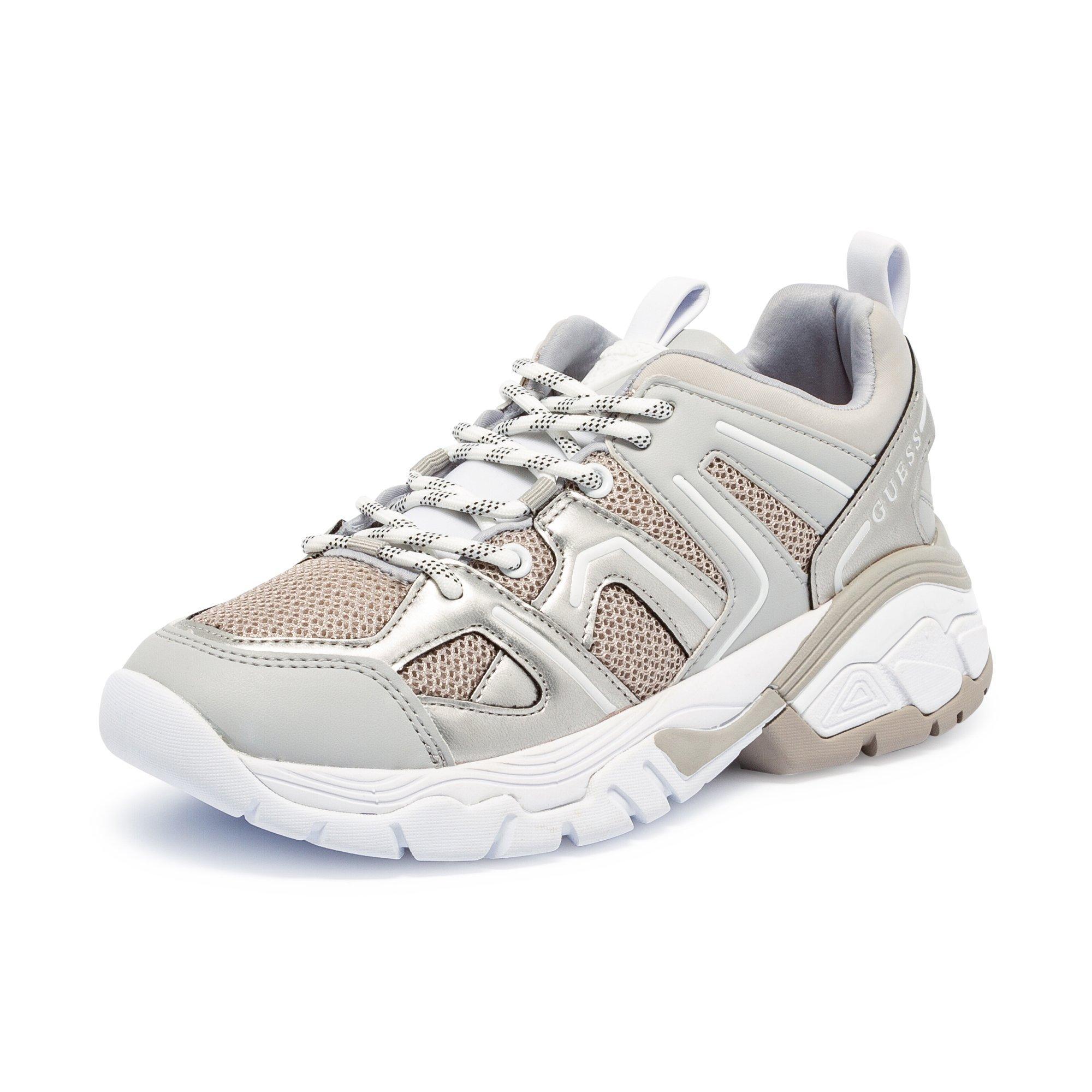Diese Sneakers von Guess begeistern mit ihrem Oberflächenmix, der farblich harmonisch ist. Die dicke Sohle passt auch dazu. Ein bequemer und trendiger Schuh für jeden Tag – und schöne Stadtspaziergänge.