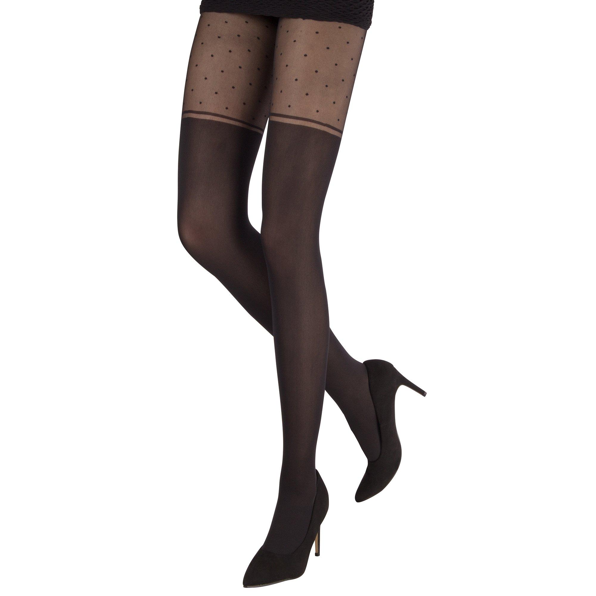 Schöne Strumpfhose mit Punkten über dem Knie und verstärkten Zehen. Das Design verleiht jedem Outfit eine schicke und verspielte Note.