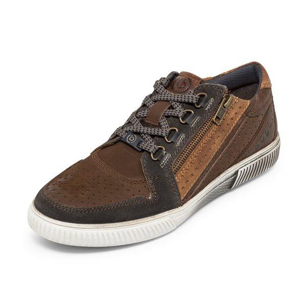 Dieser Schnürer aus Leder von Bugatti besticht durch seinen Used Look. Der Strukturmix sowie das seitliche Zippelement verleihen diesem Freizeit-Schuh einen lockeren Stil, welcher sich bestens für Freizeitgarderobe oder ein Jeans-Outfit eignet. Das Marken-Emblem von Bugatti ist ansprechend in die Schuh-Lasche eingebrannt und unterstreicht den Used Stil dieses Schuhs.