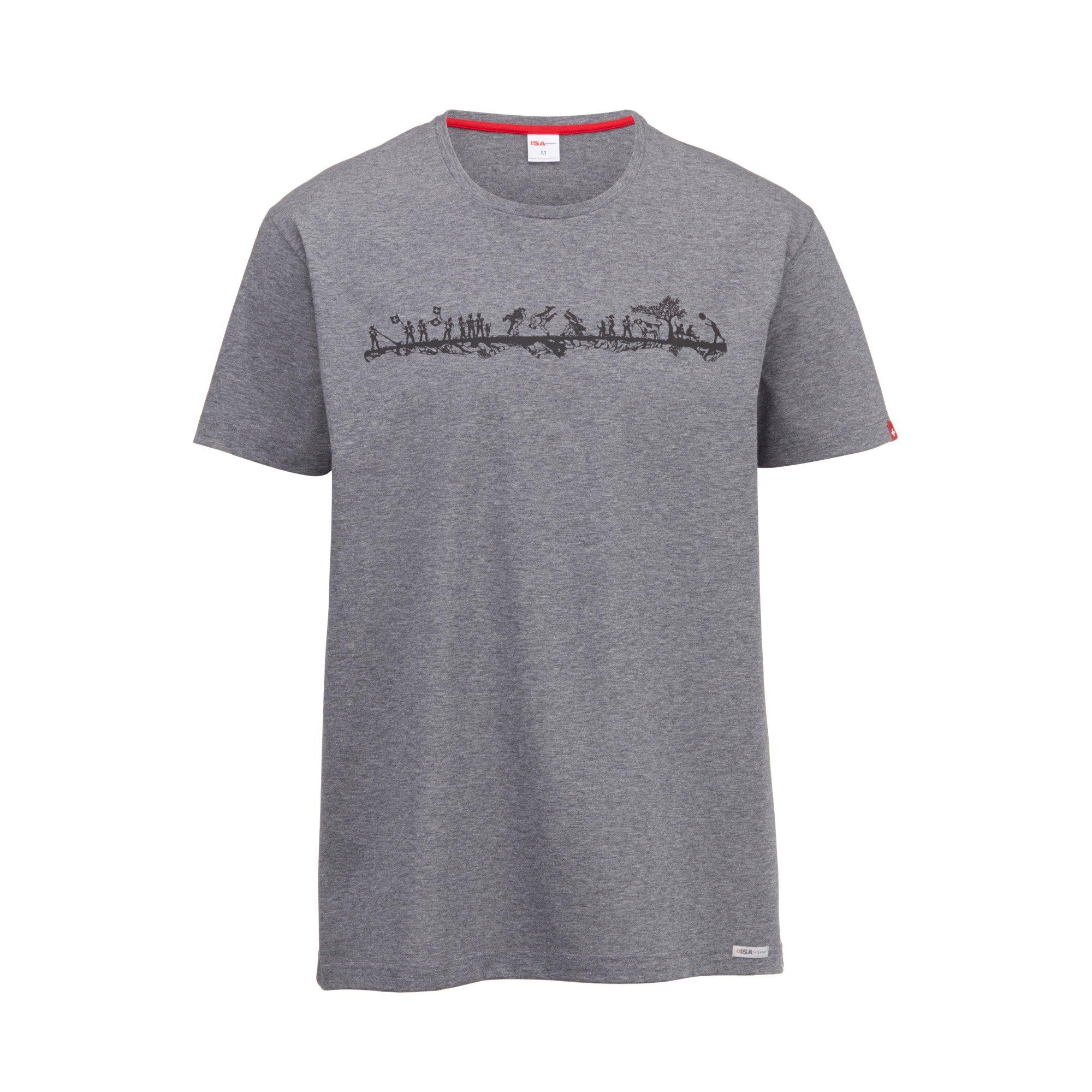 Tragen Sie ein Stück Schweizer Kultur: Das T-Shirt aus weicher Baumwolle ist mit einem schönen Scherenschnitt-Muster im Schwinger-Look designt. Sind Sie parat für den Hosenlupf?