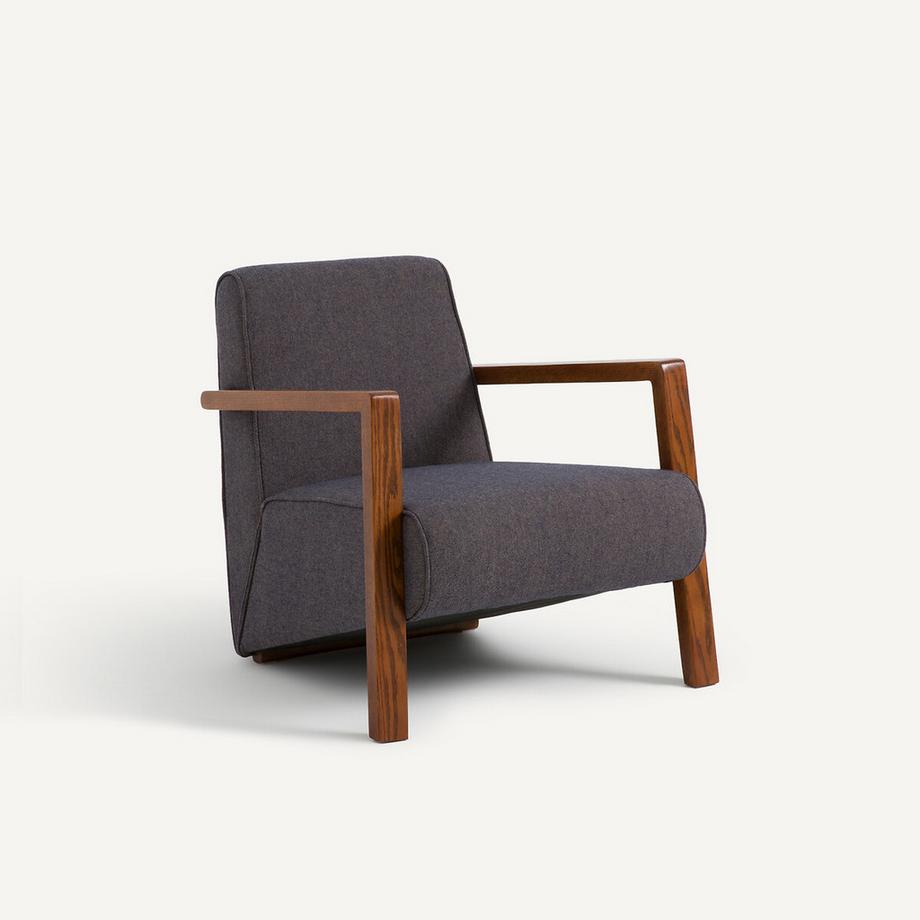 AM.PMSessel aus massiver Eiche und meliertem Baumwollstoff