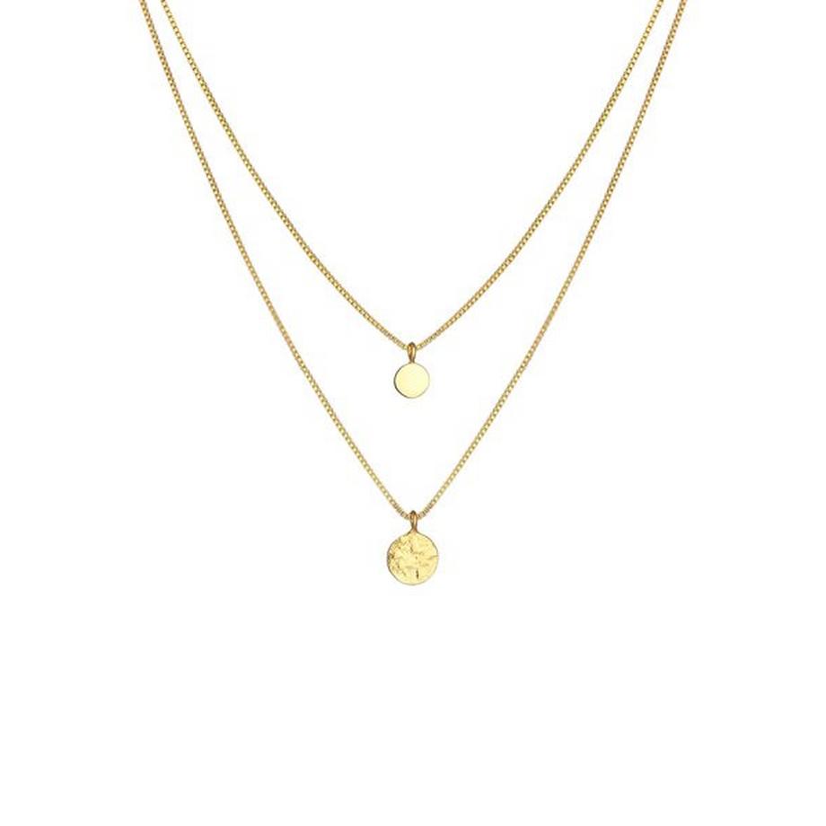 ElliHalskette 2-Lagig Layer Coin Plättchen Struktur