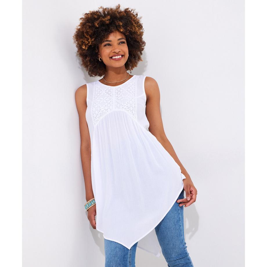 Joe BrownsTunika Taschentuchsaum Spitzeneinsatz