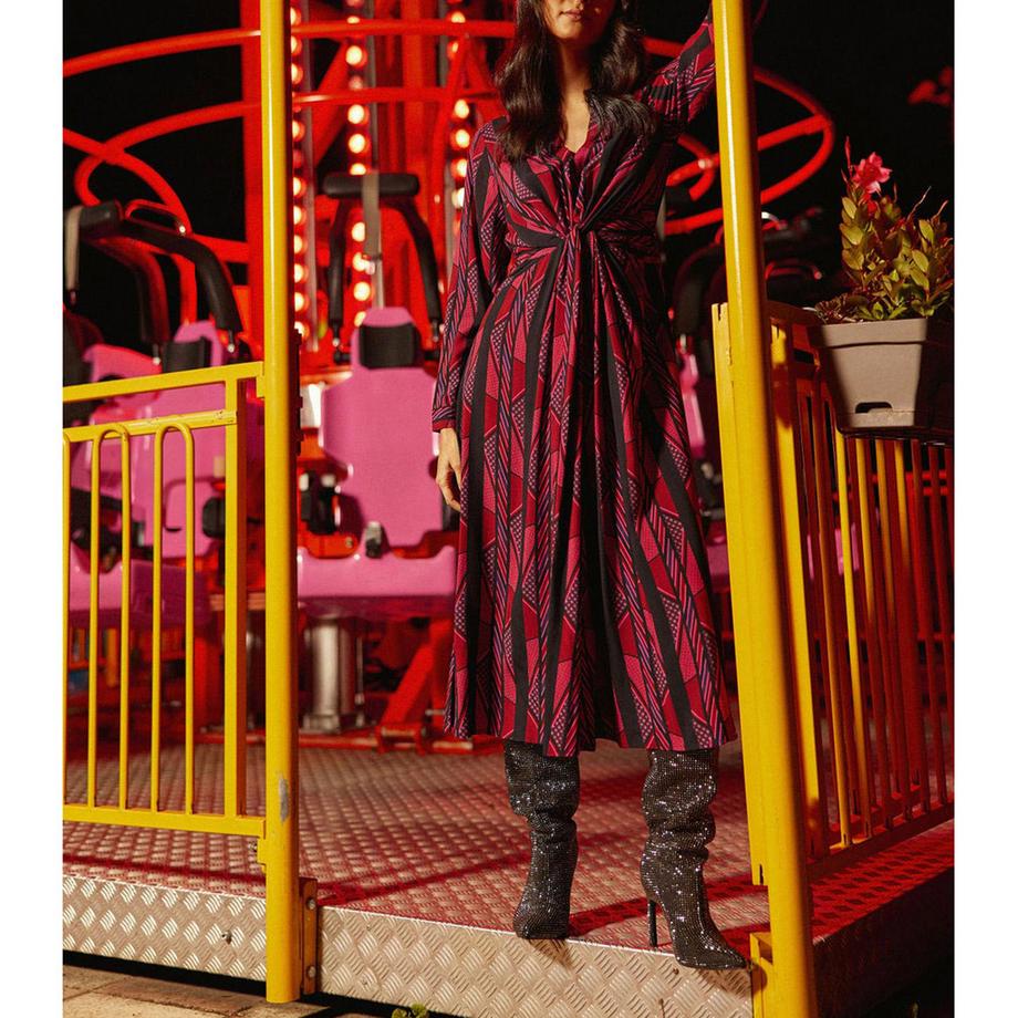 La Petite EtoileLangarm Geometrisches Print Midikleid