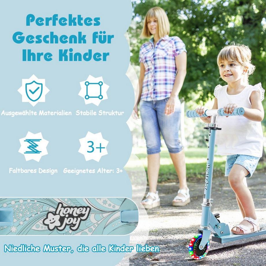 NorthixKinder Roller Scooter mit LED-Räder & Klappbar Lenker Höhenverstellbar Tretroller Kinderroller Hellblau
